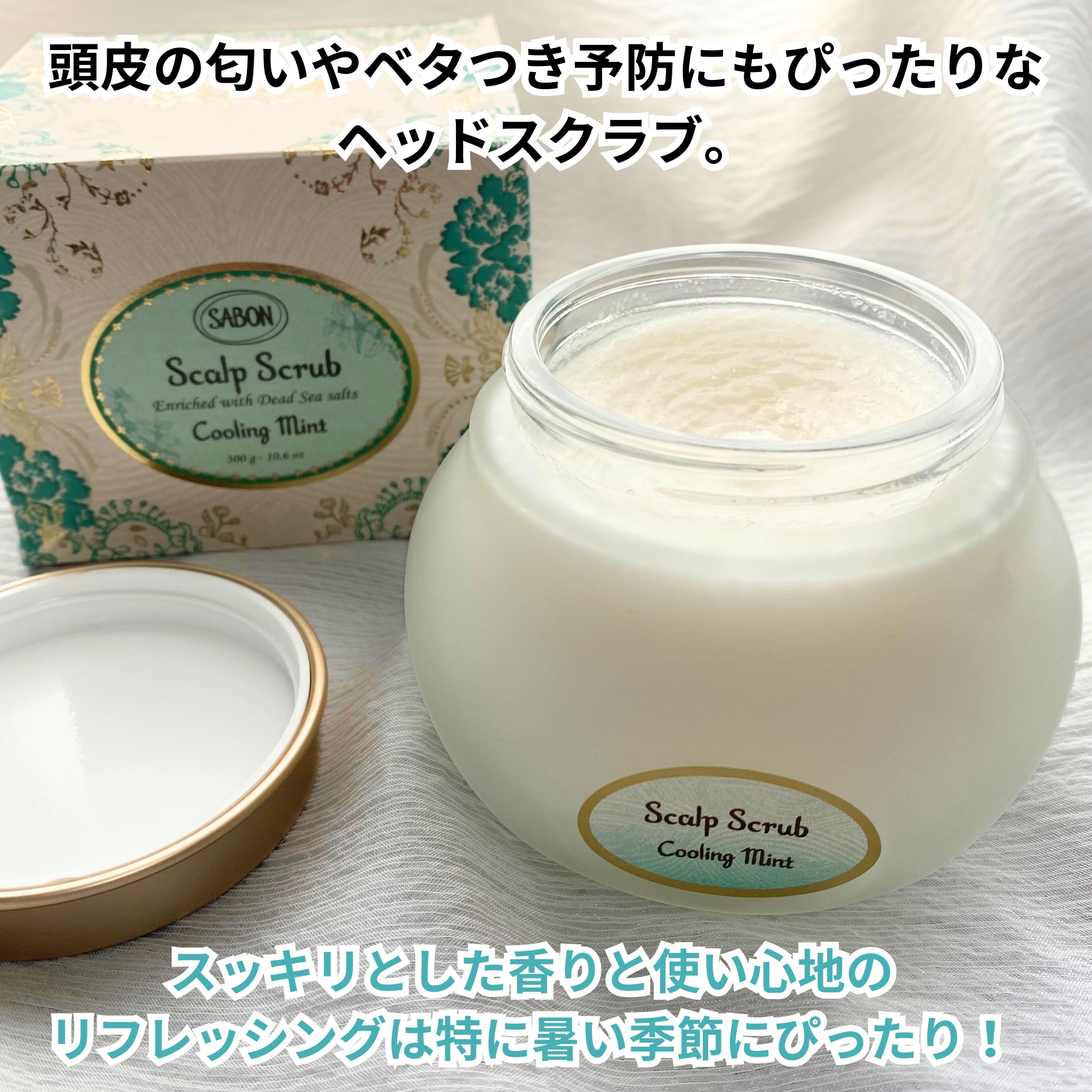 サボン ヘッドスクラブリフレッシング ミネラル豊富な死海の塩で、頭皮の古い角質やにおいの元となる皮脂、汚れをオフしてくれるヘッドスクラブ♡ 今まで持っていなかったヘッドスクラブなので使うのドキドキ💓 頭皮の状態と香りに合わせて3種類から選ぶこ...