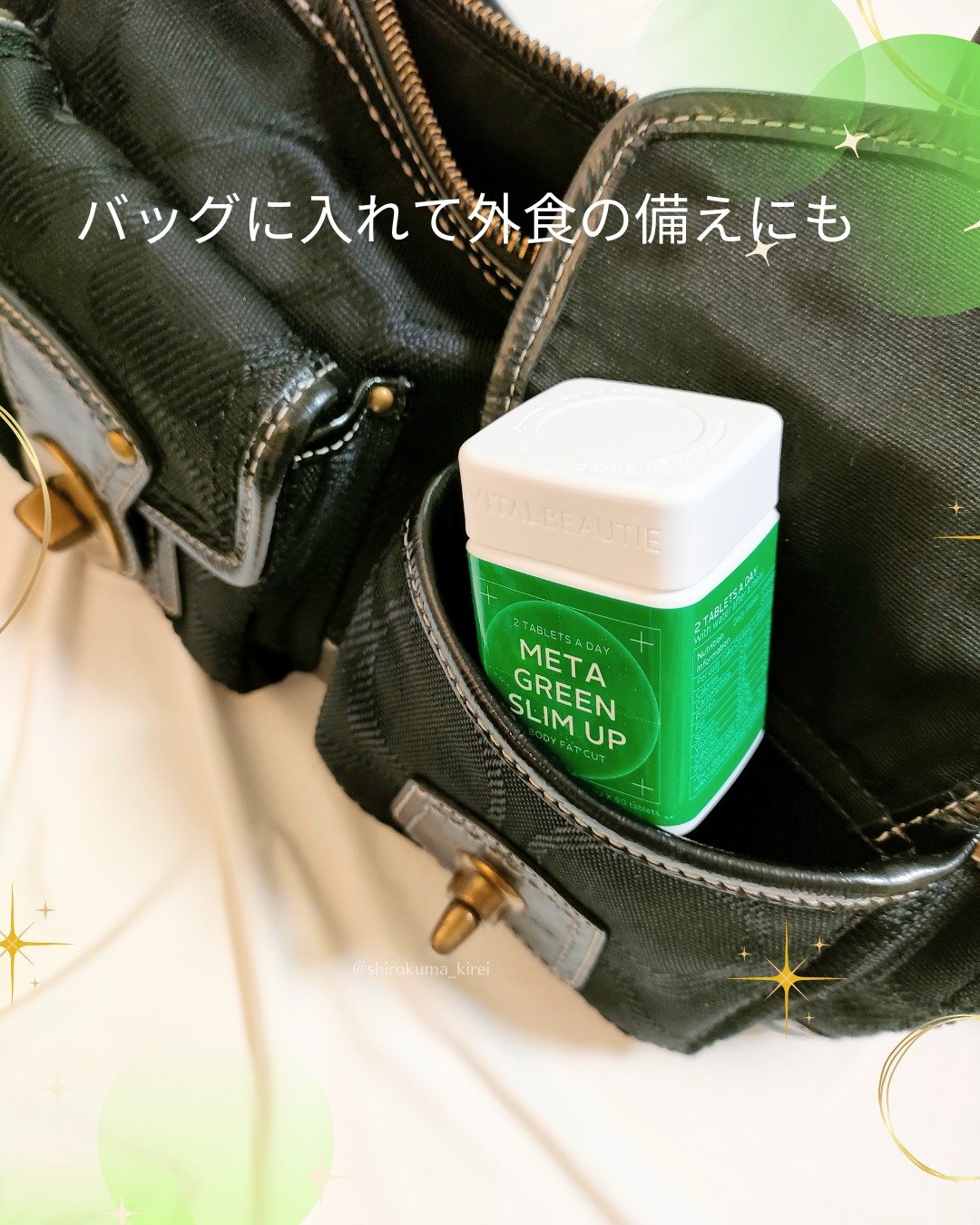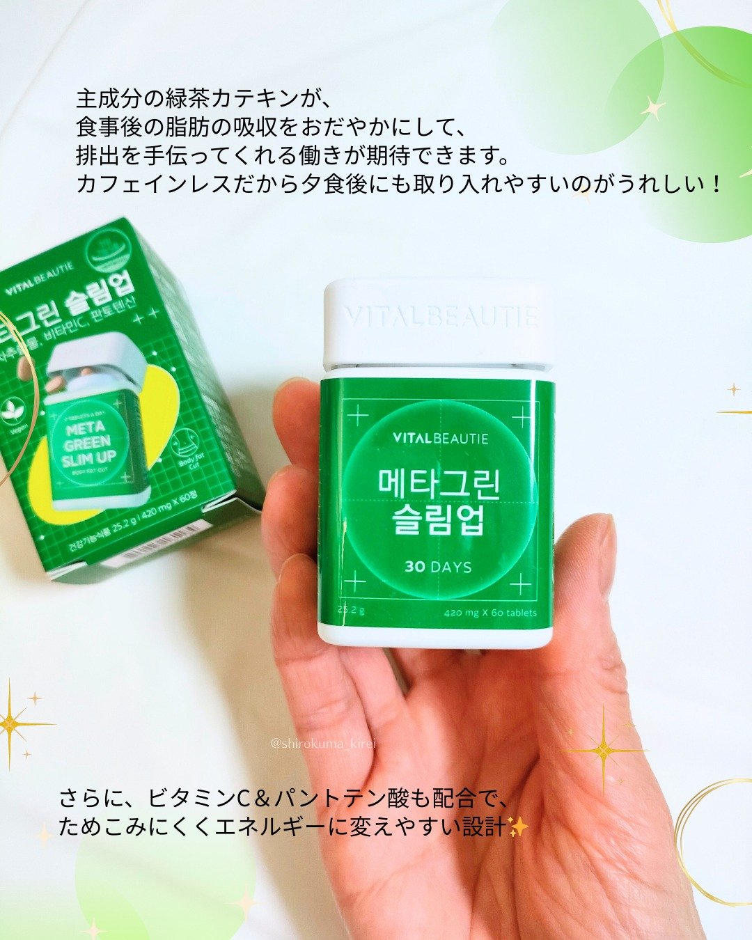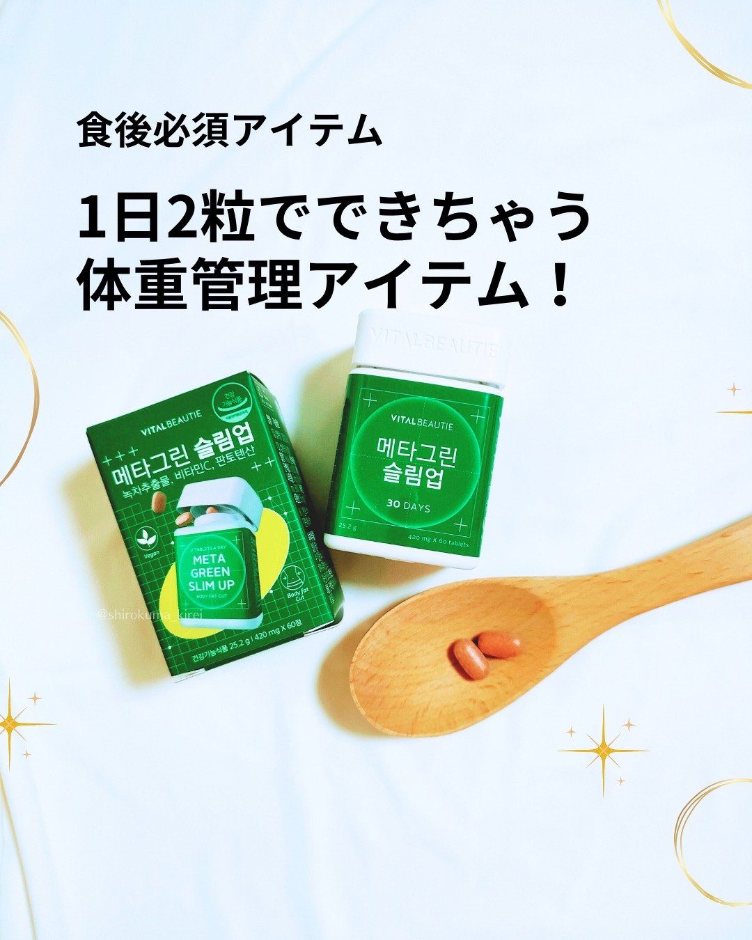 #PRメタグリーンスリムアップ🌿▶@vitalbeautie_official1日2粒💚食後必須アイテム✨緑茶カテキン配合で、食事後の脂肪の吸収を抑えて、排出を手伝ってくれる♡小粒だから飲みやすくて続けやすいのも◎✨#ダイエット#体脂肪減少#...
