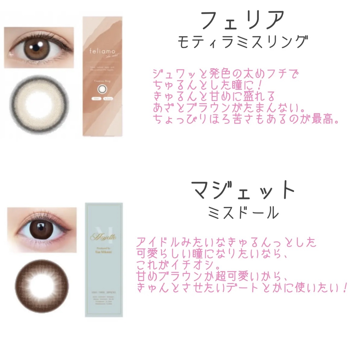 ナチュラルから華やかまで、シーンに合わせて選べる「ミミシャルム」のカラコンをご紹介! 自然で透明感のある瞳に仕上げてくれるので、デイリー使いにもぴったりです✨ 自分にぴったりのカラコンを見つけて、毎日をもっと素敵に💫