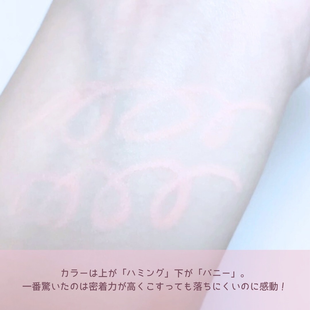 - <02 ファジー(Fuzzy)> トリメチルシロキシケイ酸、メチルトリメチコン、マイカ、合成ワックス、イソヘキサデカン、酸化鉄、グンジョウ、酸化チタン、セレシン、カルナウバロウ、トリイソステアリン酸ポリグリセリル-2、セテアリルアルコール、(アクリレーツ/アクリル酸ステアリル/メタクリル酸ジメチコン)コポリマー、オクチルドデカノール、マンガンバイオレット、メチコン、ジメチコン、水酸化Al、ジステアルジモニウムヘクトライト、炭酸プロピレン、カオリン <04 メロウ(Mellow) > トリメチルシロキシケイ酸、メチルトリメチコン、マイカ、合成ワックス、イソヘキサデカン、酸化チタン、酸化鉄、セレシン、カルナウバロウ、トリイソステアリン酸ポリグリセリル-2、セテアリルアルコール、(アクリレーツ/アクリル酸ステアリル/メタクリル酸ジメチコン)コポリマー、オクチルドデカノール、青1、水酸化Al、ジメチコン、メチコン、赤202、ジステアルジモニウムヘクトライト、リンゴ酸ジイソステアリル、炭酸プロピレン <05 ポッシュ(Posh)> トリメチルシロキシケイ酸、メチルトリメチコン、マイカ、合成ワックス、イソヘキサデカン、酸化鉄、酸化チタン、セレシン、カルナウバロウ、トリイソステアリン酸ポリグリセリル-2、(アクリレーツ/アクリル酸ステアリル/メタクリル酸ジメチコン)コポリマー、セテアリルアルコール、オクチルドデカノール、リンゴ酸ジイソステアリル、メチコン、ジメチコン、水酸化Al、ジステアルジモニウムヘクトライト、赤202、炭酸プロピレン、トリイソステアリン酸イソプロピルチタン <06 ダスク(Dusk)> トリメチルシロキシケイ酸、メチルトリメチコン、マイカ、合成ワックス、イソヘキサデカン、酸化鉄、酸化チタン、セレシン、カルナウバロウ、トリイソステアリン酸ポリグリセリル-2、セテアリルアルコール、(アクリレーツ/アクリル酸ステアリル/メタクリル酸ジメチコン)コポリマー、オクチルドデカノール、メチコン、ジメチコン、水酸化Al、ジステアルジモニウムヘクトライト、炭酸プロピレン <07 ハミング(Humming)> 酸化チタン、合成ワックス、エチルヘキサン酸アルキル(C12-15)、オクチルドデカノール、トリイソステアリン酸ポリグリセリル-2、イソヘキサデカン、セレシン、カルナウバロウ、(VP/ヘキサデセン)コポリマー、(アクリル酸アルキル/アクリル酸ステアリル/アクリル酸ジメチコン)コポリマー、シリカ、黄4、水酸化Al、セテアリルアルコール、ポリイソブテン、ジメチコン、トリイソステアリン酸イソプロピルチタン、青1、マイカ、メチコン <08 バニー(Bunny)> 酸化チタン、合成ワックス、エチルヘキサン酸アルキル(C12-15)、オクチルドデカノール、トリイソステアリン酸ポリグリセリル-2、イソヘキサデカン、セレシン、カルナウバロウ、(VP/ヘキサデセン)コポリマー、(アクリル酸アルキル/アクリル酸ステアリル/アクリル酸ジメチコン)コポリマー、シリカ、黄4、水酸化Al、セテアリルアルコール、ポリイソブテン、ジメチコン、トリイソステアリン酸イソプロピルチタン、青1、マイカ、メチコン <10 ライク(Like)> トリメチルシロキシケイ酸、メチルトリメチコン、マイカ、合成ワックス、イソヘキサデカン、酸化チタン、セレシン、黄4、カルナウバロウ、トリイソステアリン酸ポリグリセリル-2、酸化鉄、赤202、(アクリル酸アルキル/アクリル酸ステアリル/アクリル酸ジメチコン)コポリマー、セテアリルアルコール、オクチルドデカノール、水酸化Al、青1、メチコン、ジメチコン、ジステアルジモニウムヘクトライト、炭酸プロピレン