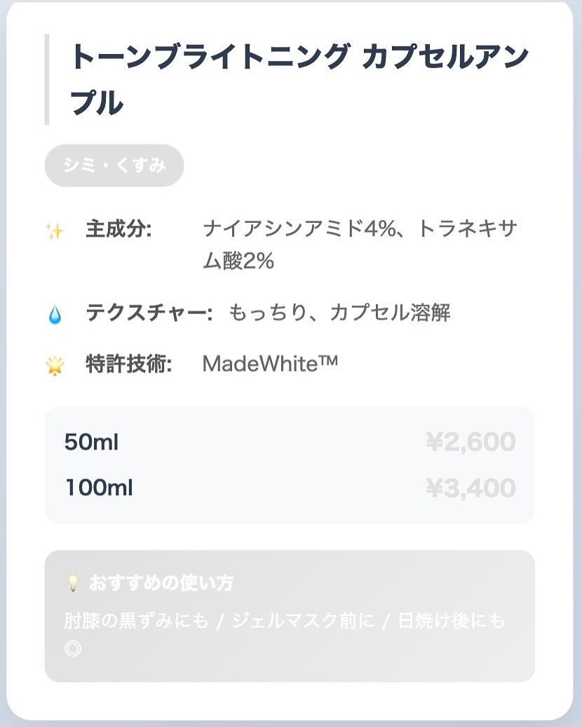 | とろみのあるもっちっとテクスチャですーっと伸びて使うと肌がしっとり♡ 重ね付けしても重くならず使いやすいです◎ | 詳細を見る | ||