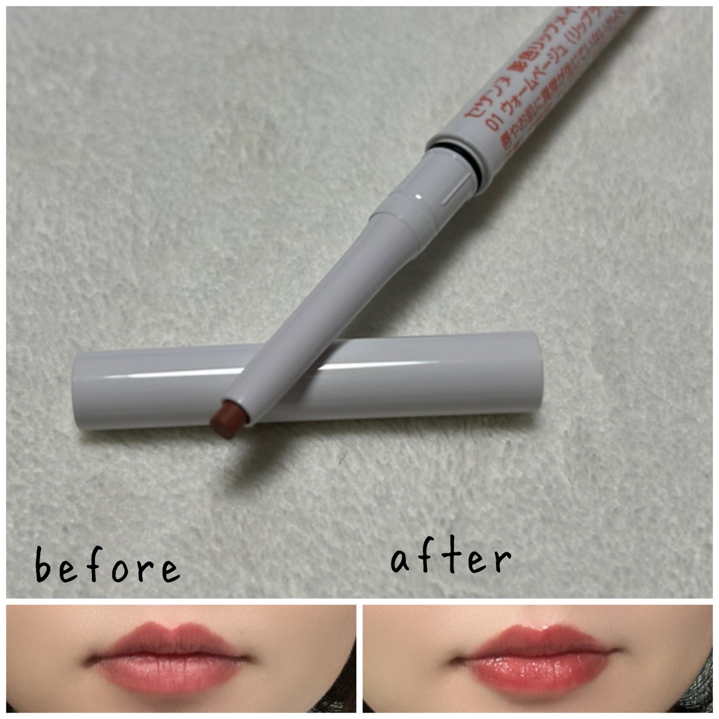 影色リップメイカー ¥660(税込) ほんのり影色を落とし込んだ絶妙カラー! 01 ウォームベージュ イエベさん向け 660円でこれはすごい! ぜひぜひチェックしてみてください!