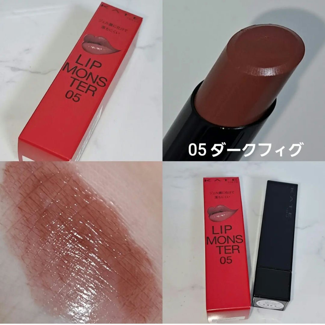 KATEリップモンスターEX-10狂気の怒号限定色05ダークフィグ各¥1,540・リップモンスターの新色EX-10狂気の怒号です💄・LIPSショッピングで購入しました!・濃い深めのレッドカラーでこれからの季節に活躍しそうです!🍁・色味が05ダ...