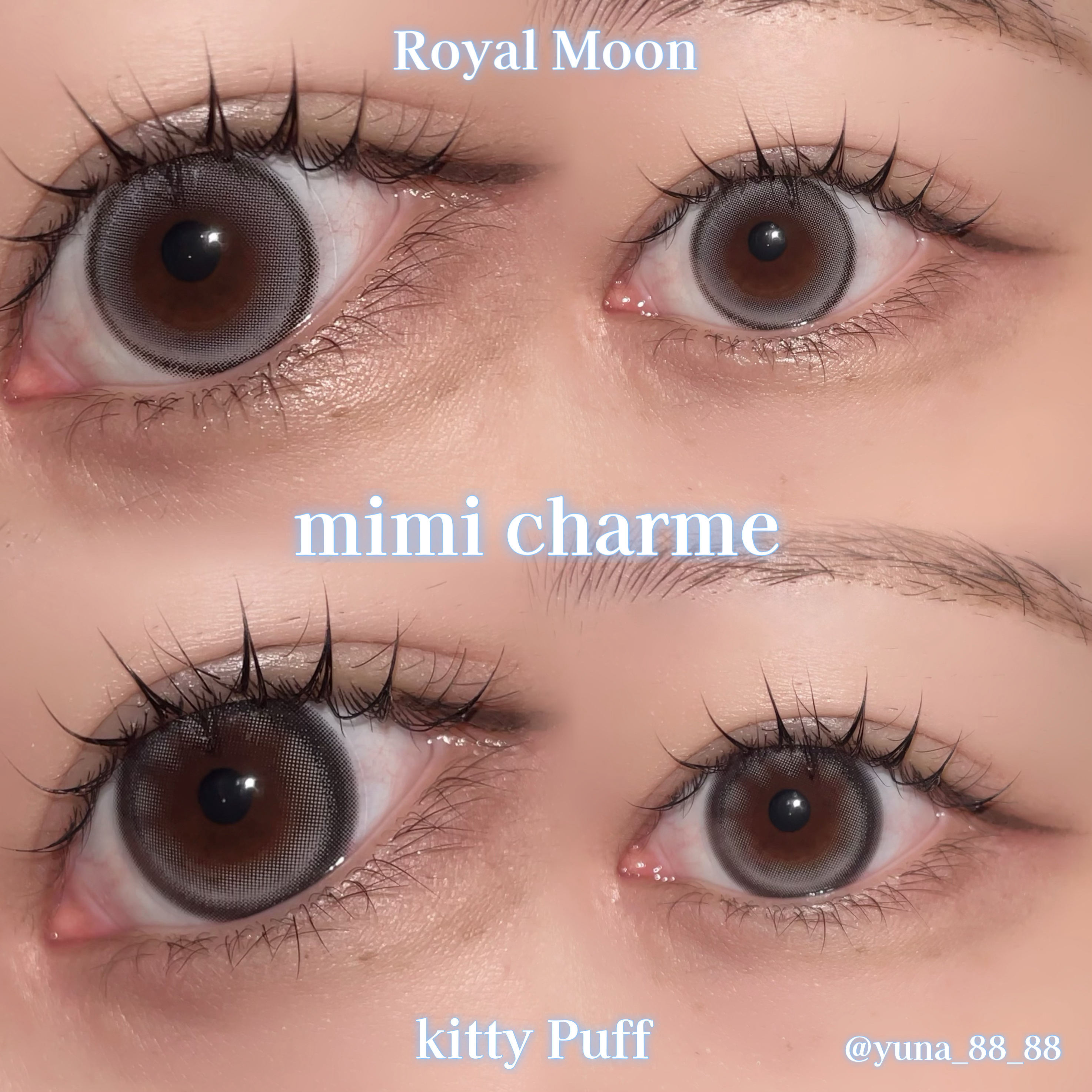 モニター募集cpに当選し、nanakoさんプロデュースカラコンmimicharme(ミミシャルム)を頂きました🩵ありがとうございます!カラーはロイヤルムーンとキティパフで、どちらも新色です🌙*:゚ロイヤルムーンは細フチ水光カラコンで、なんだか...