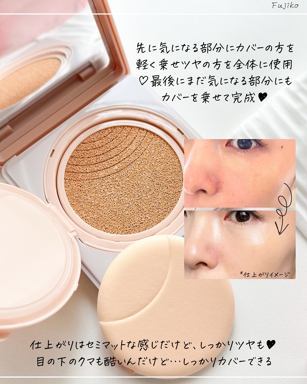 ..Fujikoデュアルクッション01ナチュラルカラー¥2,420\ベスコス21冠受賞👑/これ一つで理想のツヤ肌肌管理ファンデ!ツヤとカバーの2タイプクッションファンデ🤍これ一つで4役!(UV・下地・コンシーラー・ファンデ)たっぷり潤いで厚塗...