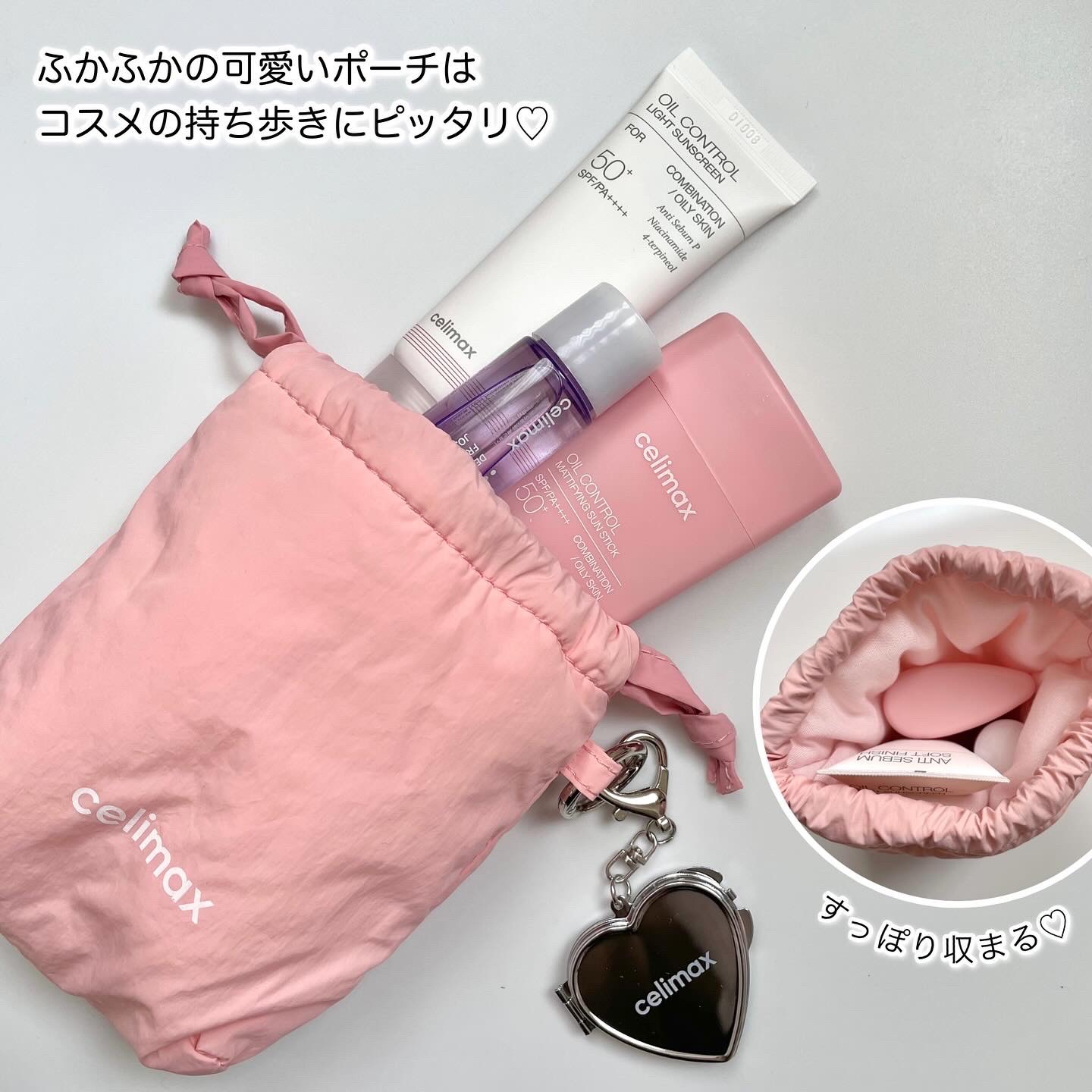 celimaxオイルコントロールセット❤️オイルコントロール日焼け止めスティック❤️オイルコントロール日焼け止め❤️フレッシュクレンジングオイル❤️巾着ポーチ❤️キーホルダーの豪華なセットが発売中!皮脂分泌が多めテカリが気になるニキビができや...