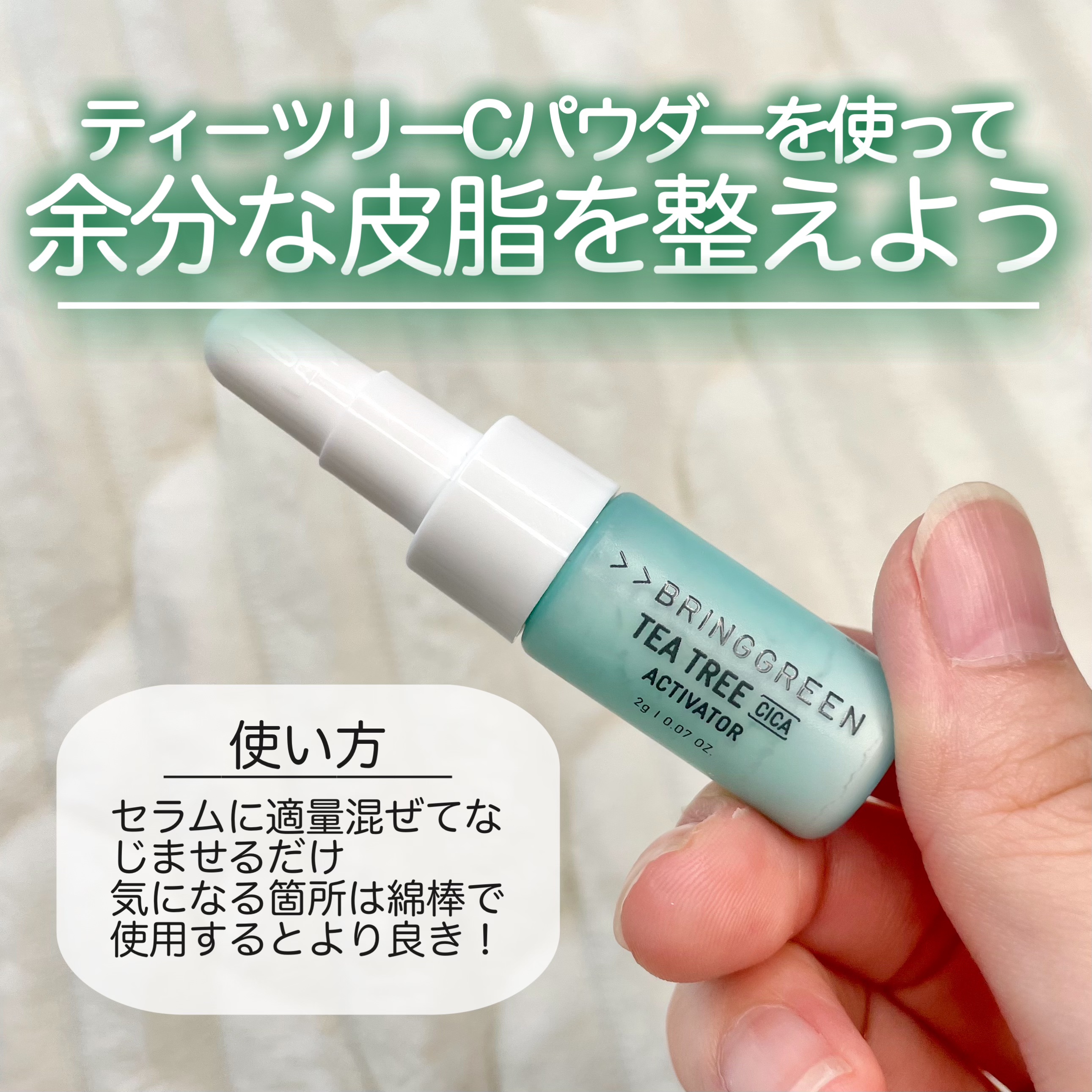 - ■ブランドメッセージ 悩める肌*にブリングリーン SPEED VEGAN CARE *乾燥による 毎日直面する肌悩み。すべての肌悩みに素早く答えるブランドであるために、親しみのある植物由来成分とこだわりの原料を配合。 ブリングリーンは、スピードヴィーガンケアを提案する自然派スキンケアブランドです。 (フランスの「EVE VEGAN」を取得) ■ジンクテカBセラムセットについて ジンクテカBセラムに、ティーツリーCパウダー2gがセットになった一つの商品で、5月から発売の新商品です。 メインメッセージ:余分な皮脂を整え肌トラブル*²を全力でサポート 愛称:お守りセラム #お守りセラム #オリーブヤングNo1*¹肌トラブル*²ケアセラム #ジンクテカ™*³ 【ジンクテカBセラムについて (愛称;お守りセラム)】 なぜ“お守りセラム”? 気分もダウンさせる肌トラブル*² 。CICAがたっぷり入ったジンクテカBセラムが10~20代の肌トラブル*²を守ってあげたいという思いが込められています。 1)こだわりのW独自成分!ジンクテカ™*³&ティーツリーシカ™*⁴配合 敏感肌のケアに本気のブリングリーン。植物由来の成分で誕生したティーツリーシカ™*⁴だけでなく ツボ草(CICA)*⁵を高濃縮*⁶した独自成分ジンクテカ™*3がお肌の油・水分バランスを整え、短期間で余分な皮脂による肌トラブル*2に集中アプローチ! ①パワーアップした*6CICA、独自成分”ジンクテカ™*¹ お肌の油・水分バランスが乱れると、余分な皮脂により毛穴が広がり肌トラブル*2の原因に。 理想的な成分配合を目指して誕生したこだわりのジンクテカ™*³が、敏感なお肌に集中アプローチします。 ジンク(PCA亜鉛):毛穴目立ち*⁷をケアし、お肌の油分を整えます。 テカ(アシアチコシド、アシアチン酸、マデカシン酸):ツボ草(CICA) *⁵の重要アクティブ原料。高純度*⁶パウダーで敏感なお肌のゆらぎにアプローチします。 ②独自成分ティーツリー™*⁴ ブリングリーンならではの独自技術でチェジュ産こだわりの5種類のティーツリーコンプレックス*⁸とシカ*⁹をブレンド。 お肌の水分&ゆらぎにしっかりとアプローチし、キメの整ったすこやかな素肌を保ちます。 2)お肌のゆらぎだけでなくくすみ*²ケアまで叶う 植物性ムチン*¹⁰が肌バリアをサポートし、4-テルピネオール *¹¹がお肌のゆらぎに徹底アプローチ。 さらに、ナイアシンアミド*¹²配合で、肌キメを整えくすみ*²まで同時にケアします。 3)とろみテクスチャーで抜かりなくケア!テカリポソームで安定度を高めてパワーアップ*6 もちっととろみのあるテクスチャーながら角質層のすみずみまで薄く均等になじみます。 さらに、TECA粒子を約25nmにナノリポソーム化し、テクスチャー自体も安定させお肌への浸透*¹³にこだわりました。 【セットになって登場するティーツリーCパウダーについて】 ジンクテカBセラムと一緒に使うと肌トラブル*²集中ケアができるパウダーです。 厳選した成分を詰め込んだ肌トラブル*²ケアへの高濃度*⁶スペシャルパウダー。 特に肌トラブル*²が気になる際にセラムにトントン!と混ぜて使うと、余分な皮脂を整えて肌トラブル*²にアプローチします。 (肌トラブル*²ケアのための成分:酸化亜鉛*¹²&PCA亜鉛*¹²、ティーツリーシカ™*⁴、テカ*¹⁴、カラミン*¹²、アラントイン*¹²、グリチルリチン酸2K*¹²) とろみのあるジンクテカBセラムに混ぜて使うとセラムがさらっとした使用感に変わるのも特徴です! [注釈] *1 2024年オリーブヤングの商品名に「トラブル」というキーワードを含むエッセンスカテゴリー内の商品の売り上げ基準(オリーブヤング調べ)、*2 乾燥による、*3 PCA亜鉛、アシアチコシド、アシアチン酸、マデカシン酸(全て整肌成分)、*4 ティーツリーエキス、ティーツリー葉エキス、ティーツリー葉水、ティーツリー花/葉/茎エキス、ティーツリー葉油、ツボクサエキス(全て整肌成分)、*5 アシアチコシド、アシアチン酸、マデカシン酸(全て整肌成分)、*6 シリーズ内比、 *7 うるおい不足による、*8 ティーツリーエキス、ティーツリー葉エキス、ティーツリー葉水、ティーツリー花/葉/茎エキス、ティーツリー葉油(全て整肌成分)、*9 ツボクサエキス(整肌成分)、*10 アシタバエキス、オクラ果実エキス、タイワンツナソ葉エキス、ハス根エキス、ヤマノイモ根エキス(全て整肌成分)、*11 香料、*12 整肌成分、*13 角質層まで、*14 アシアチコシド、アシアチン酸、マデカシン酸(全て整肌成分) ※原料の一般的な説明であり、製品に関する効能ではありません
