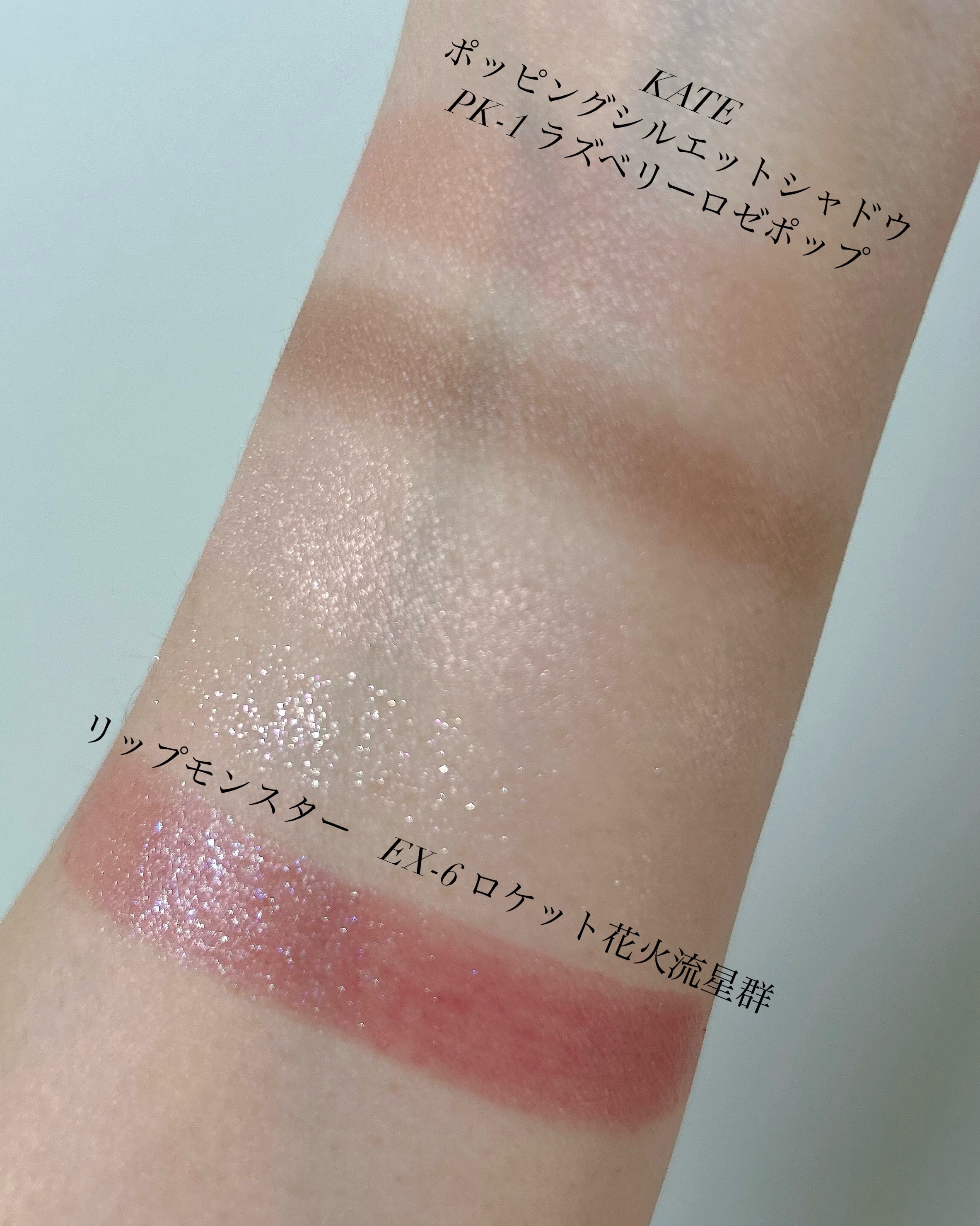 KATEケイトリップモンスターEX-6ロケット花火流星群限定の花火モンスター🎇マツキヨでゲットしました✊💖透け感のある青みピンクベースに青ラメぎっしり!!かわいすぎる!普通に見てもしっかりラメを感じるよ🥰限定なので気になる方は早めがおすすめで...