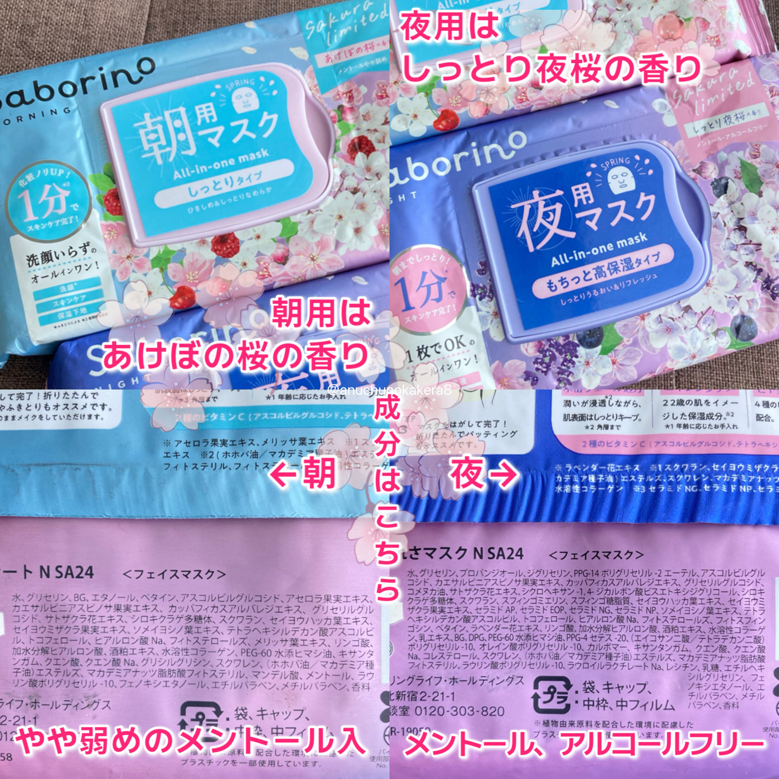 春コスメと言えば桜の香りですよね桜の香りのする買ってよかった時短マスクはこちら✧••✧サボリーノ目ざまシートNSA24しっとりタイプサボリーノお疲れさマスクNSA24もちっと高保湿タイプ各¥1,540✧••✧朝は洗顔後目ざまシートを使いますあ...