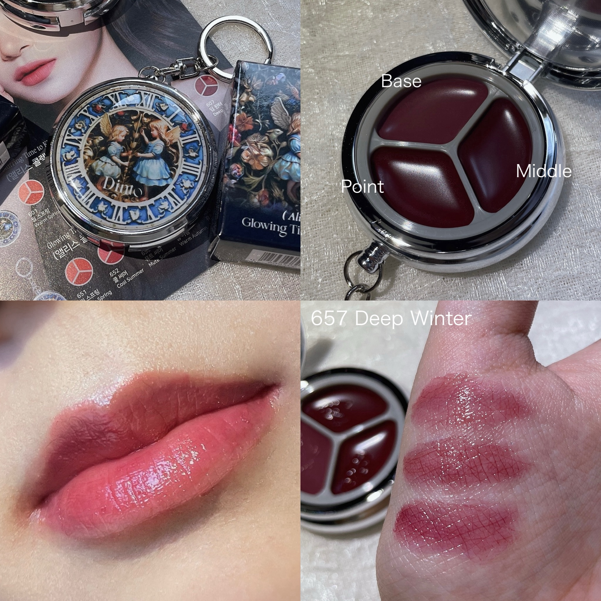 Dinto新作アリスコレクション🐰🕰️💕Dinto BLURRINGTIMETOKISS&BLUSH GLOWINGTIMETOKISS&BLUSHツヤとマットの2種類のリップ&チークで、PC別に14色展開。キーリングになってるから、持ち運ん...