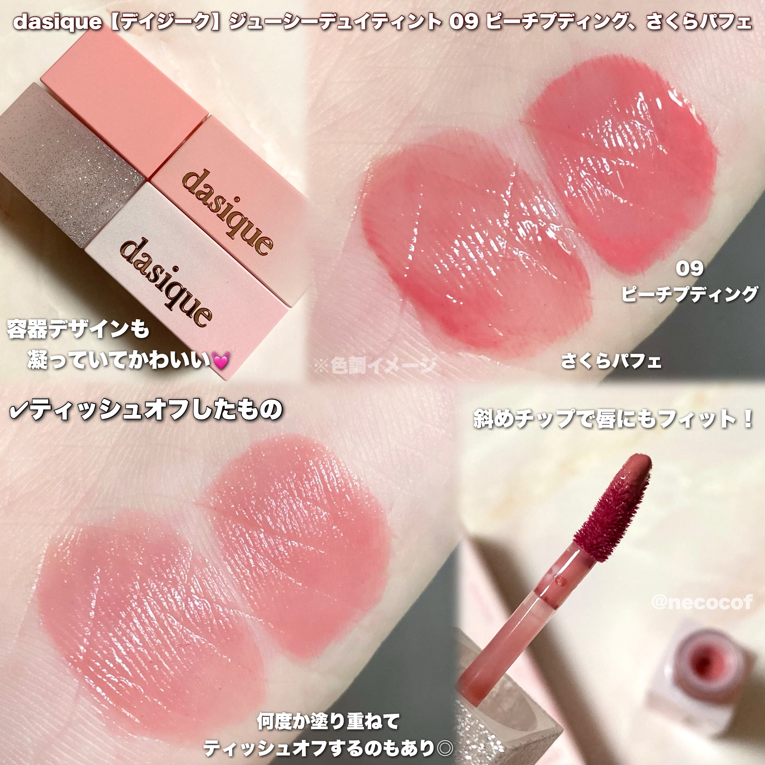 dasiqueティントの持ってる色をご紹介!▪︎dasique▫︎ジューシーデュイティント▫︎¥1,650※桃味のグミや飴の香り。結構強め!手持ちの4色についてご紹介します☻公式画像の色味との違いを感じたので特にそのあたりに触れていきます!結...