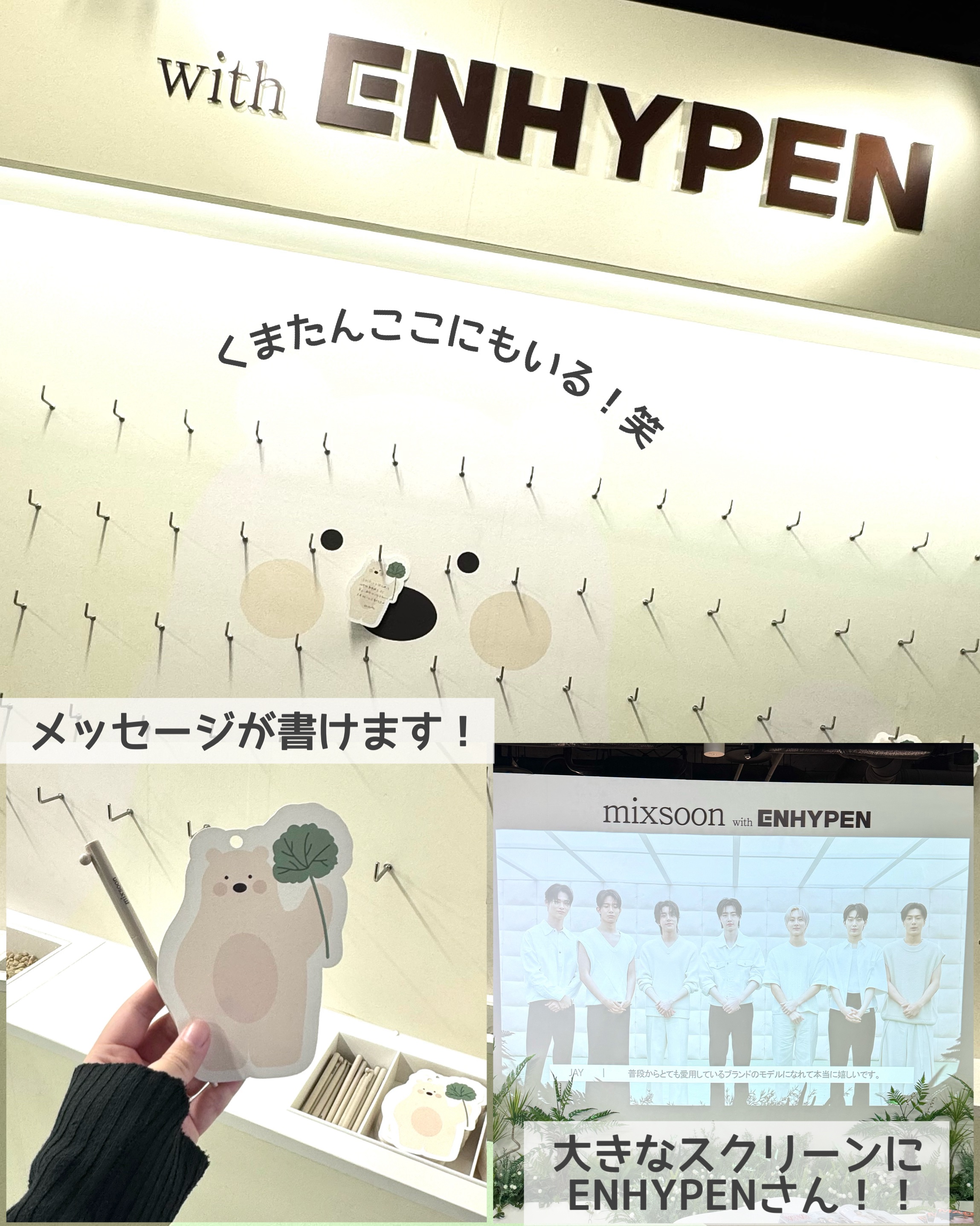 mixsoon様にご招待いただきPOPUPイベントへ🗼🍃@mixsoon_jpENHYPENのアンバサダー就任を記念したイベントで、エナプだらけの幸せ空間✨サインも飾ってあったよ✊🏻!もちろん、ミクスンのスキンケアもずらり💗💗前に美容液使って...
