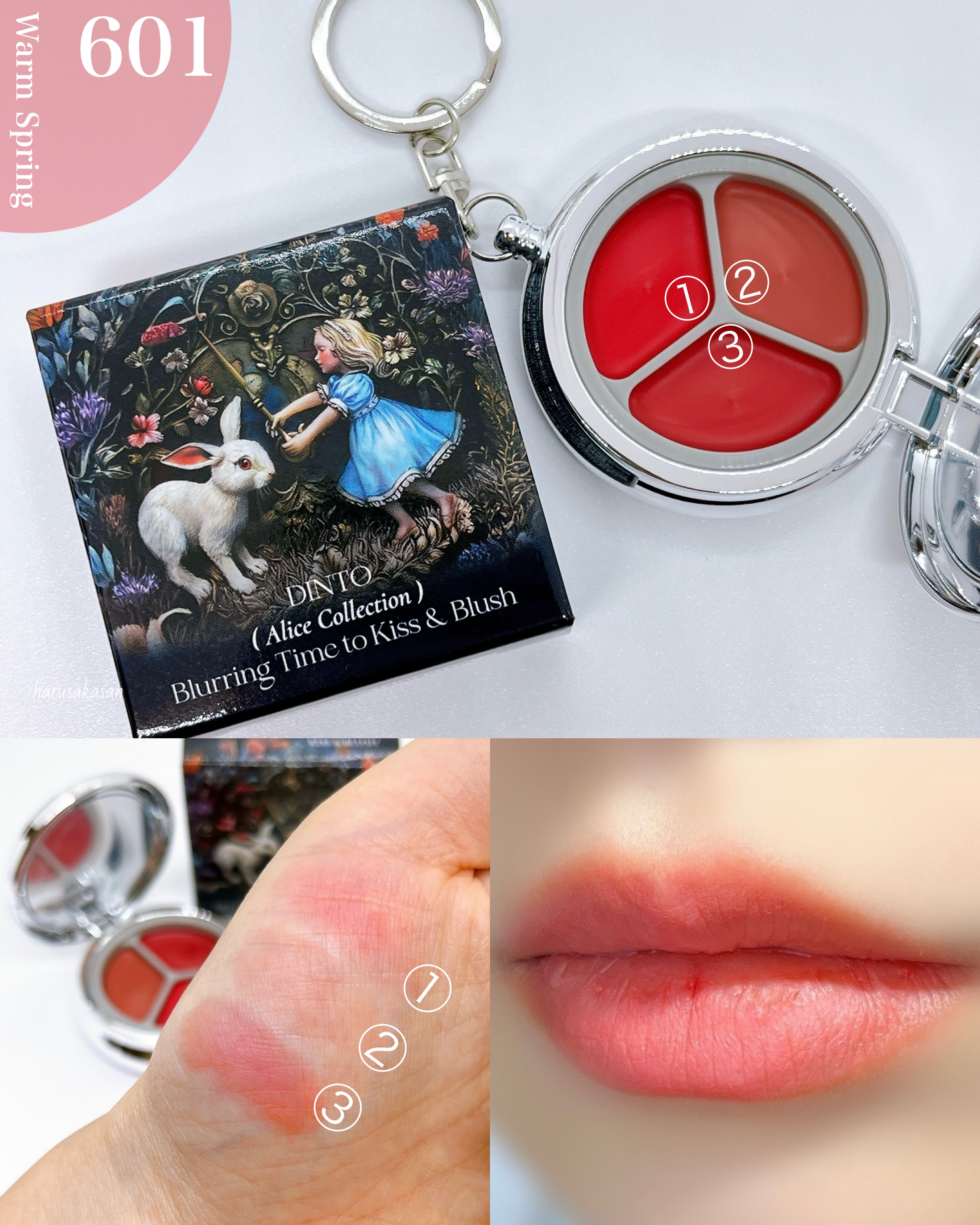 Dintoブラリングタイムトゥキス&ブラッシュ604WarmAutumn『不思議の国のアリス』『鏡の国のアリス』からインスピレーションを得たアリスコレクション🐰しっとり&ふんわりとしたテクスチャ一で唇と頬にナチュラルな血色感を与えるブラリング...
