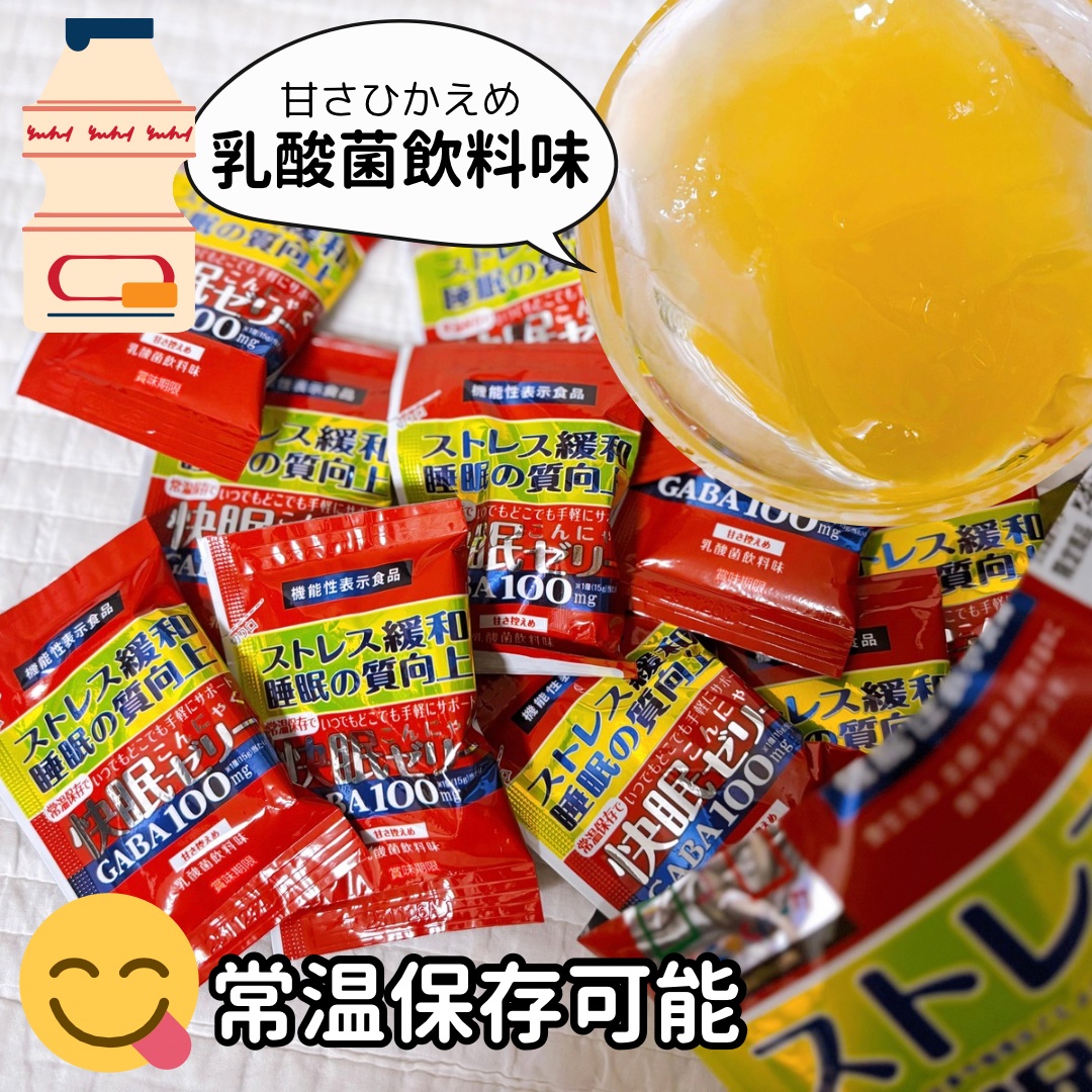 快眠こんにゃくゼリー1個あたりGABA100mg配合の機能性表示食品♪さらに乳酸菌1000億個も!1個あたり11kcal!常温保存でいつでも手軽に食べられるこんにゃくゼリーとなっています♪ ◇1日1個目安甘さ控えめの乳酸菌飲料味のこんにゃくゼ...