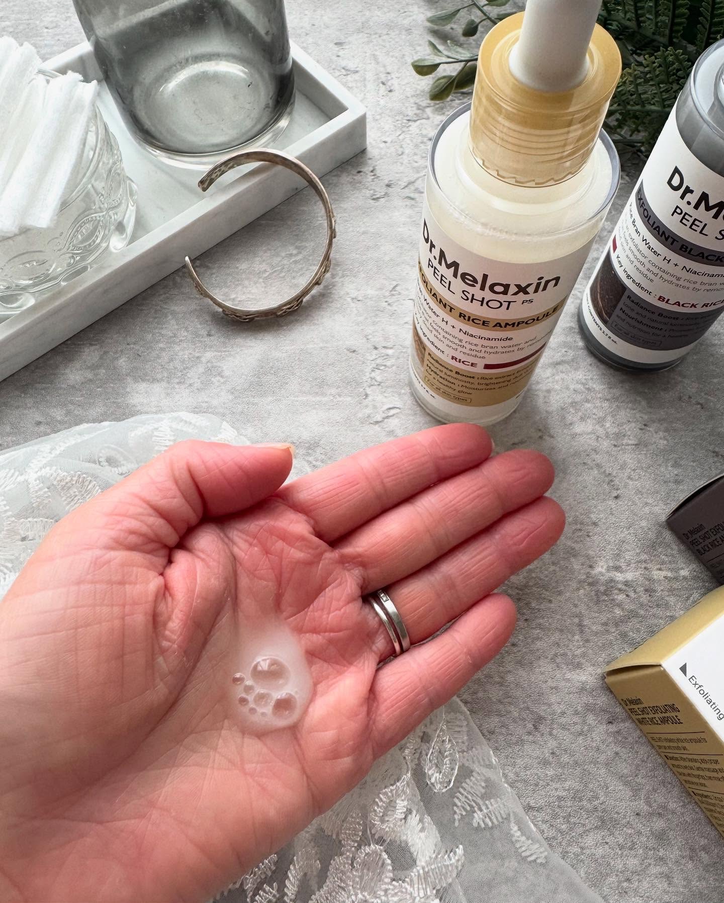 #PRDr.Melaxin白米ピールショットアンプル黒米ピールショットアンプルお米の力で優しくピーリング🌾ピーリングとアンプルを一気に!美容成分の浸透力を高める成分「ペンタライス」と「ナイアシンアミド」を配合し角質ケア後ツヤを与え明るい肌へ✨...