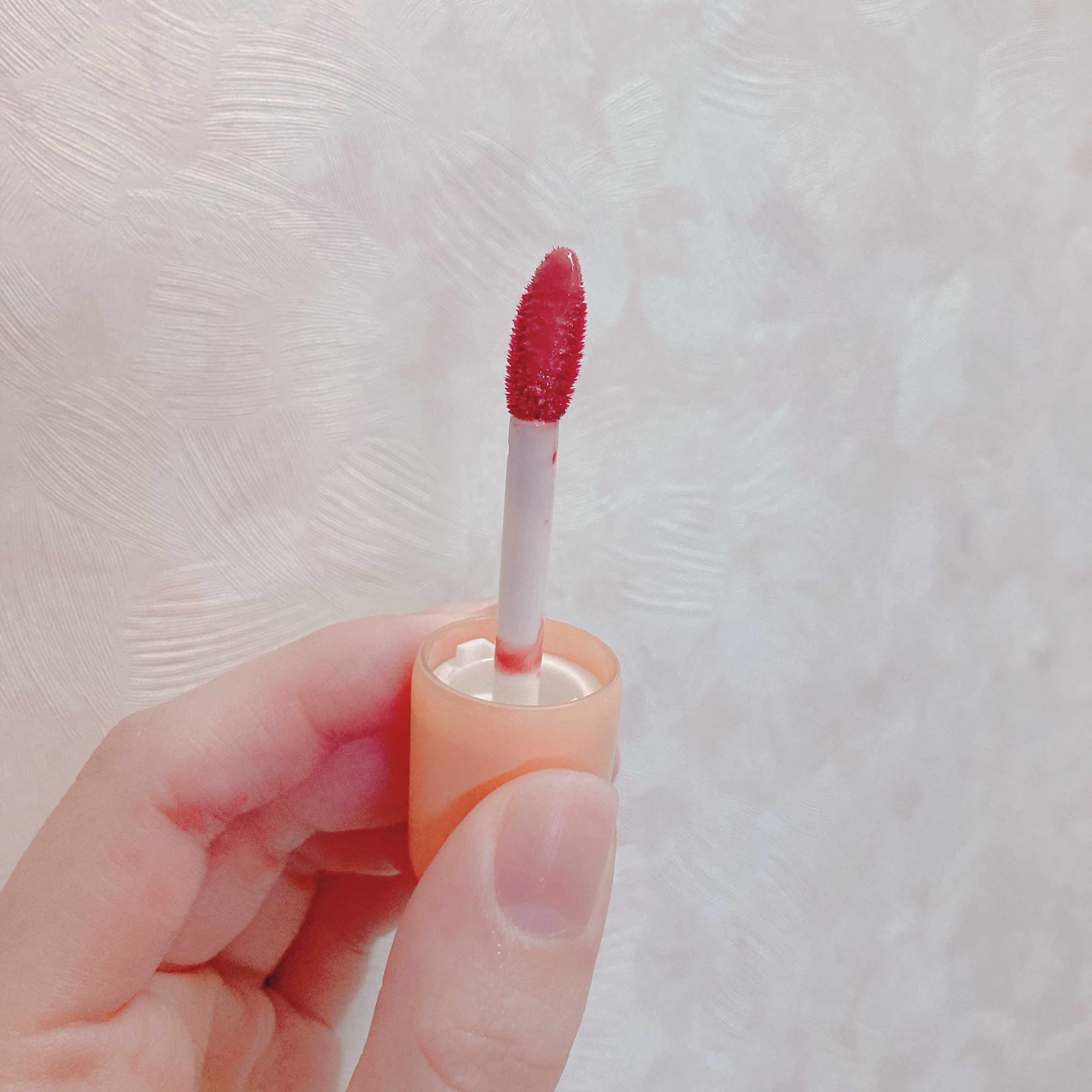 色味もパケも本当に可愛い😍 122 ロージーローズを選びましたが、ビビットなカラーが苦手な私にぴったりでした❣️ 付け心地はみずみずしくて、時間が経っても乾燥してガサガサしてこないところがとっても良いです👍 塗りやすくて、付け心地がよくて、色展開も豊富にあって、このティントは私史上1番のお気に入りになりました✨