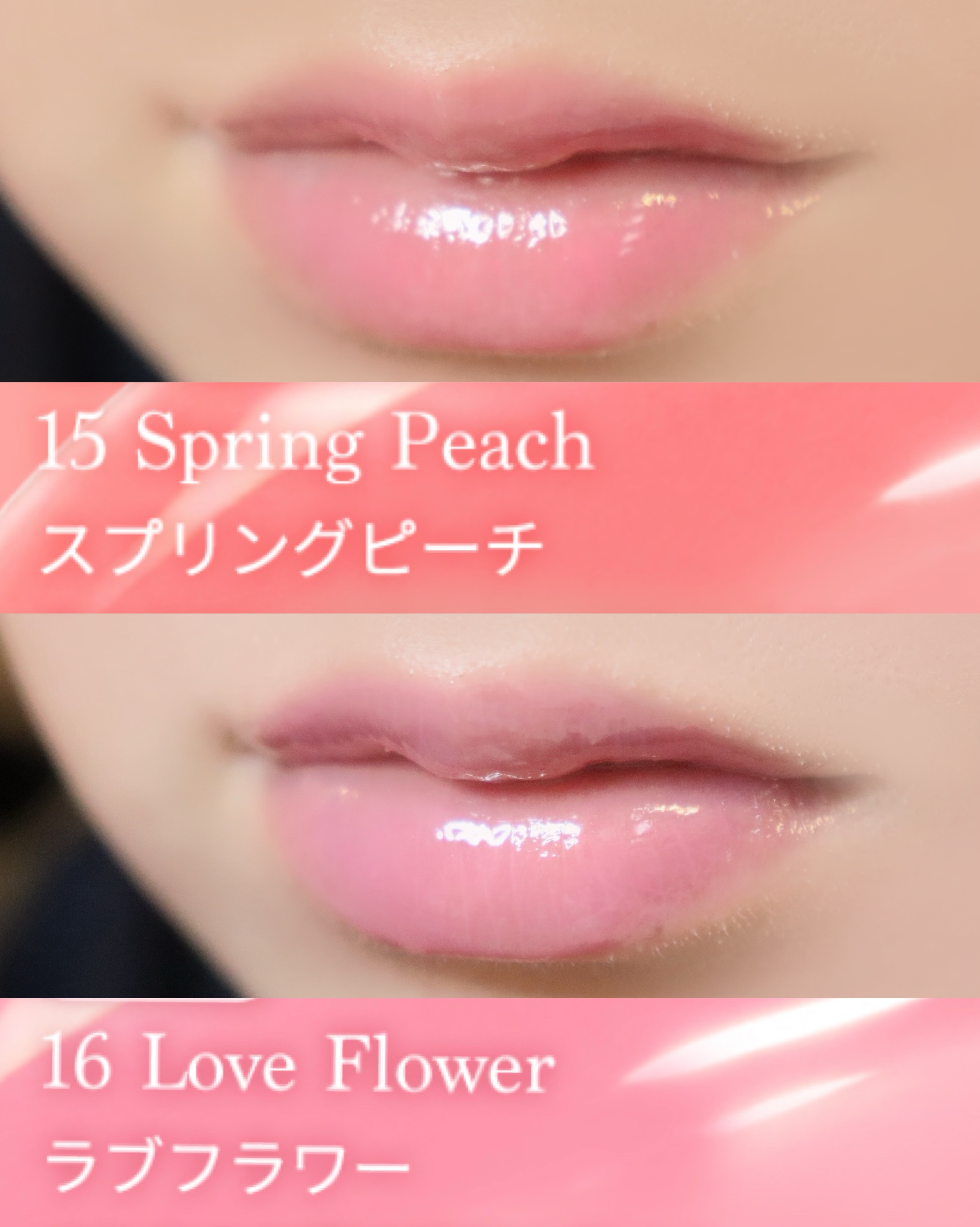 デイジーク ピュアウォーターリップグロス15スプリングピーチ春の日差しの暖かさと活気を込めたウォームピーチ16ラブフラワー清涼な春の気配を込めたソフトクールピンク桜の花びらの透明な露のように塗る瞬間澄んだ光沢とボリュームを与えるピュアウォータ...
