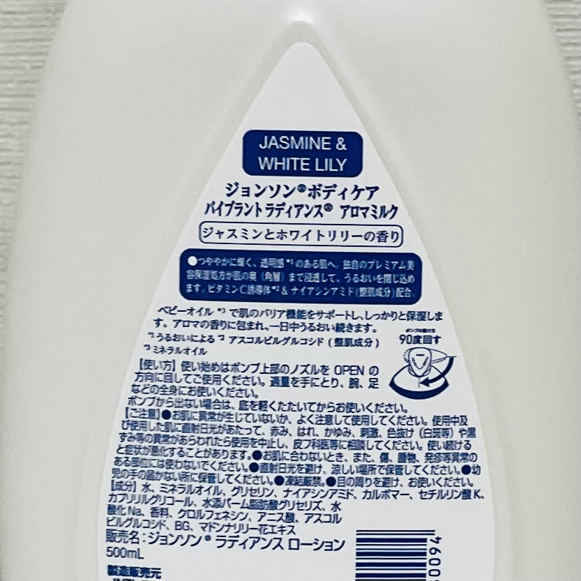 ˗ˏˋジョンソンボディケアバイブラントラディアンス アロマミルクジャスミンとリリーの香りˎˊ˗30歳になり、顔もくすみ、体もくすみどうしようかと思ってたらナイアシンアミド配合のボディクリームがでてた!何ヶ月前かに知って、もう2〜3本目!ストッ...