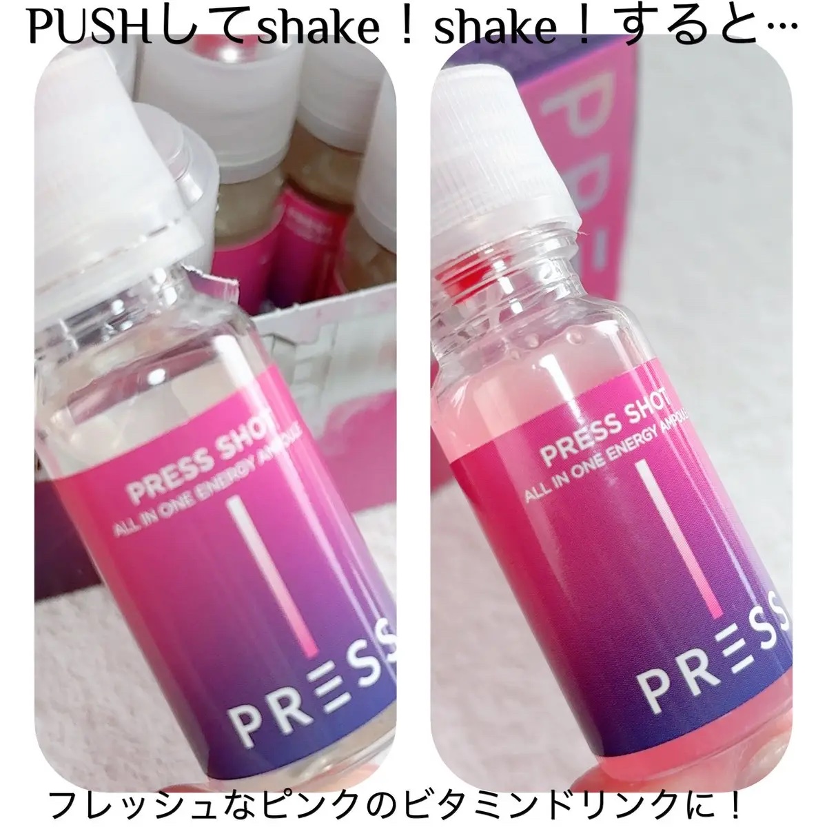 ╲PRESSSHOT╱プレスショット飲むピンクビタミン♡起きるのがつらい朝や仕事終わりに、気分リフレッシュ♡🤍PRESSしてSHAKEするだけ!魔法のようなピンクビタミンに!🤍飲むインナービューティー🤍飲むピンクビタミン...