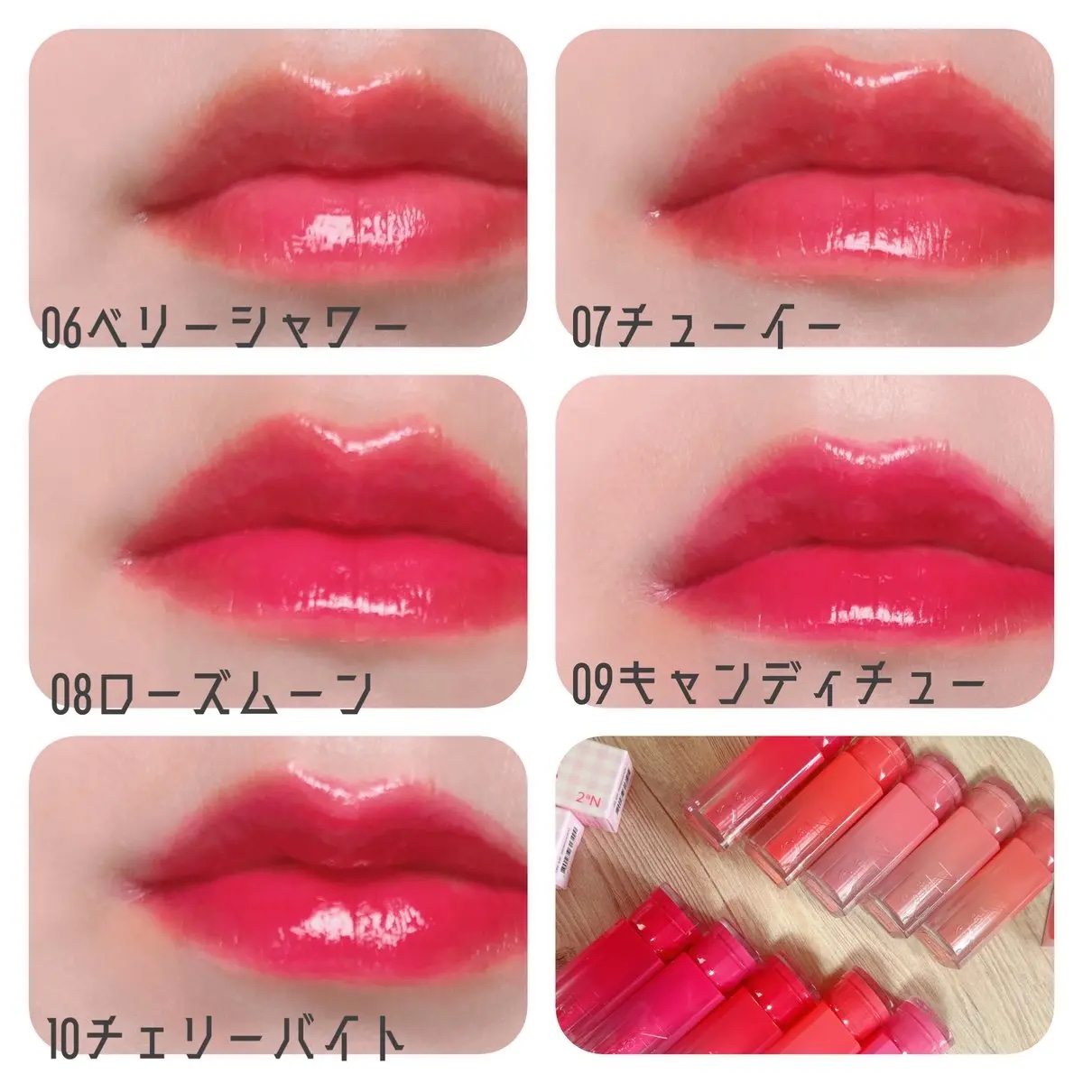 - ほんのりプランピング効果で痛くないぷっくりティント。 もっちりなのに嫌なべたつきがなく使いやすい。 縦ジワがなくなる綺麗な唇を~! ひと塗りで輝く、 澄んだ透明感あふれるぷるんとしたキャンディツヤ🍭 ティントにグロスの長所をプラスしたテクスチャーで、 ベタつかず長時間続く光沢を ✧˖*°࿐