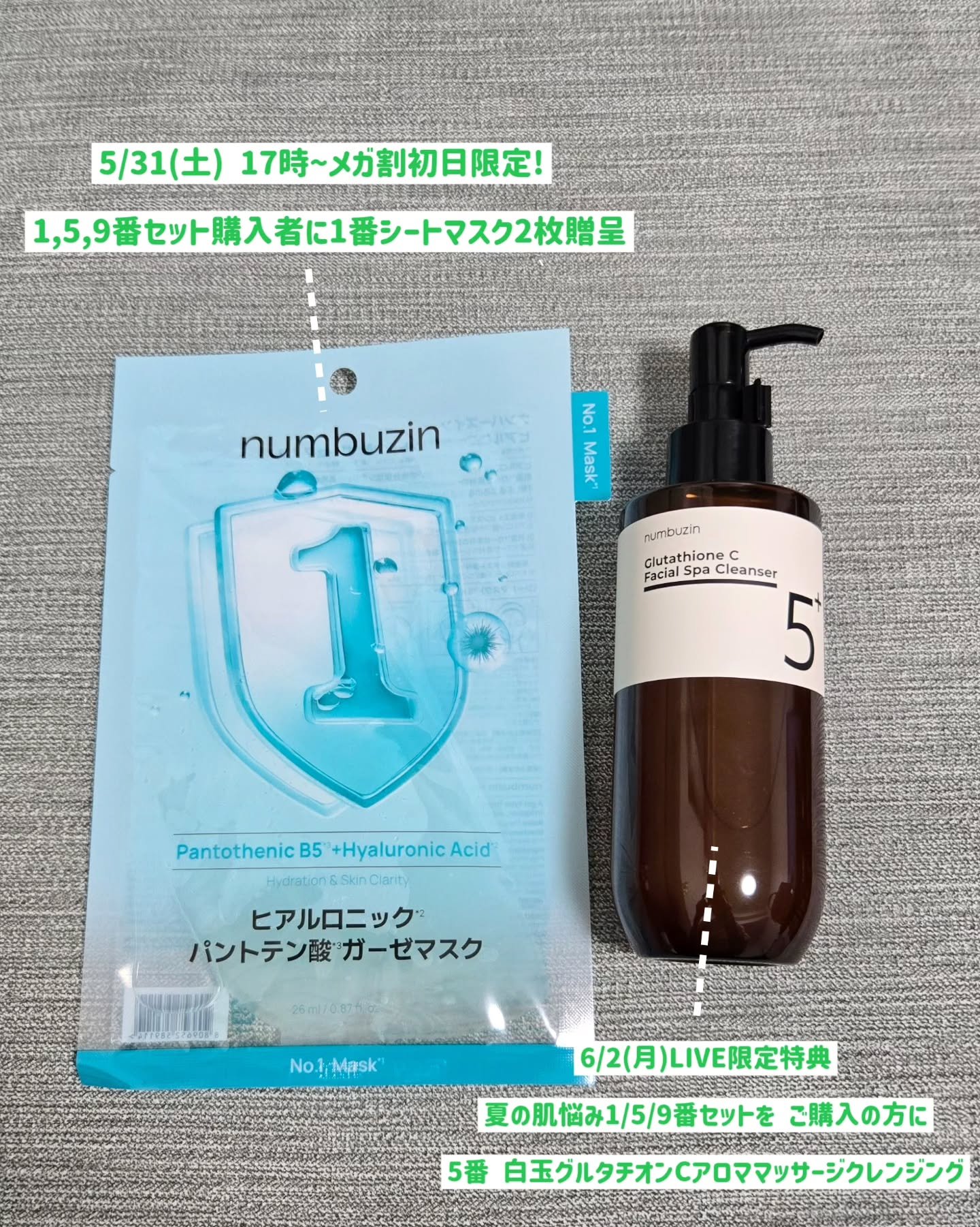 🌼𝗻𝘂𝗺𝗯𝘂𝘇𝗶𝗻/𝟱+🌼大人気のナンバーズイン5番シリーズはメガ割期間中の購入がおすすめ🤫🉐**5番白玉グルタチオンC白雪肌セット** ◼︎5番白玉グルタチオンC美容液×2個 ◼︎5番白玉グルタチオンCふりかけマスク×8枚...