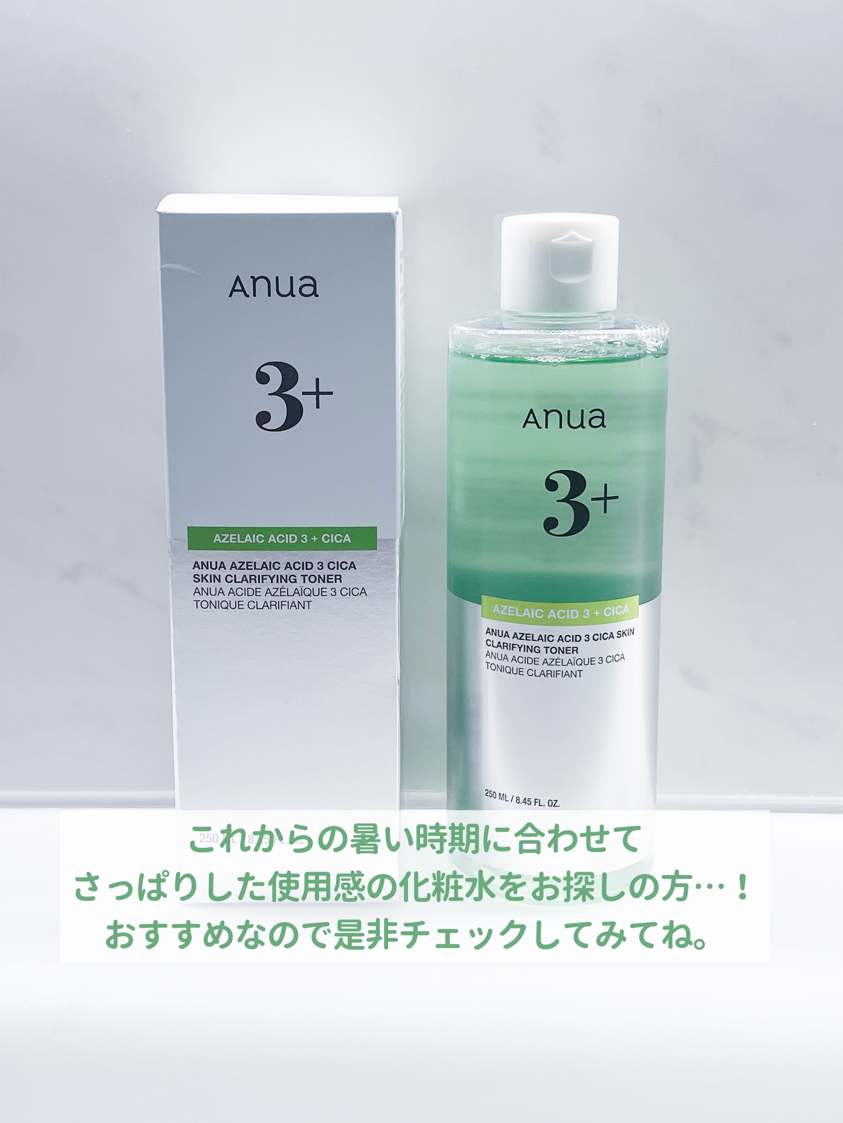 #PR暑い日が増えてきたよね☀️トナー変えてみない?@anua.jp「アゼライン酸3CICAスキンクリアトナー250ml」さっぱりするような使用感これからの季節にいいなと思うテクスチャー。コットンやパッドにひたひたに浸してパックにしてもいいか...