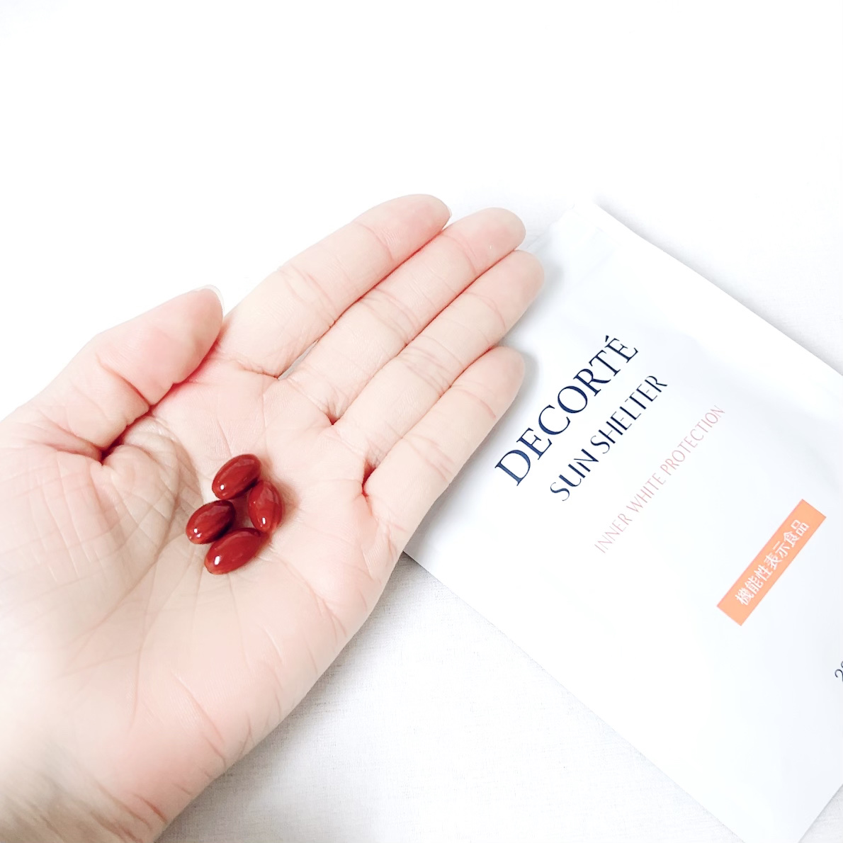 コスメデコルテサンシェルターインナーホワイトプロテクションコスデコの飲む日焼け止め発売前に1週間お試しパックが出ていたので購入サプリメントは結構苦手で長続きしないのですがこれは小ぶりでつるんとして飲みやすかった◎好き🤭錠剤とかよりも飲みやすか...