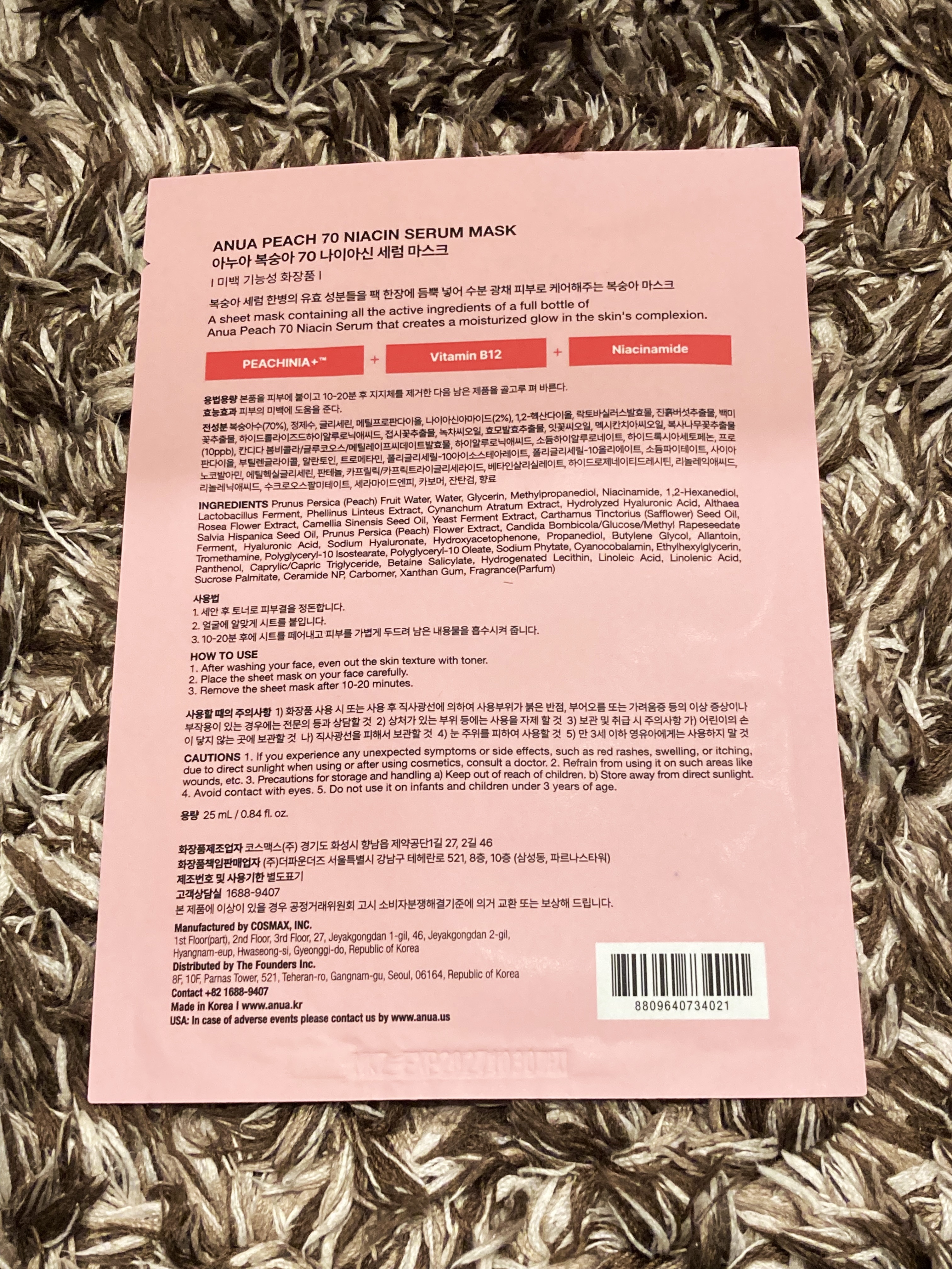 商品詳細情報Anua 桃70%ナイアシンシートマスク