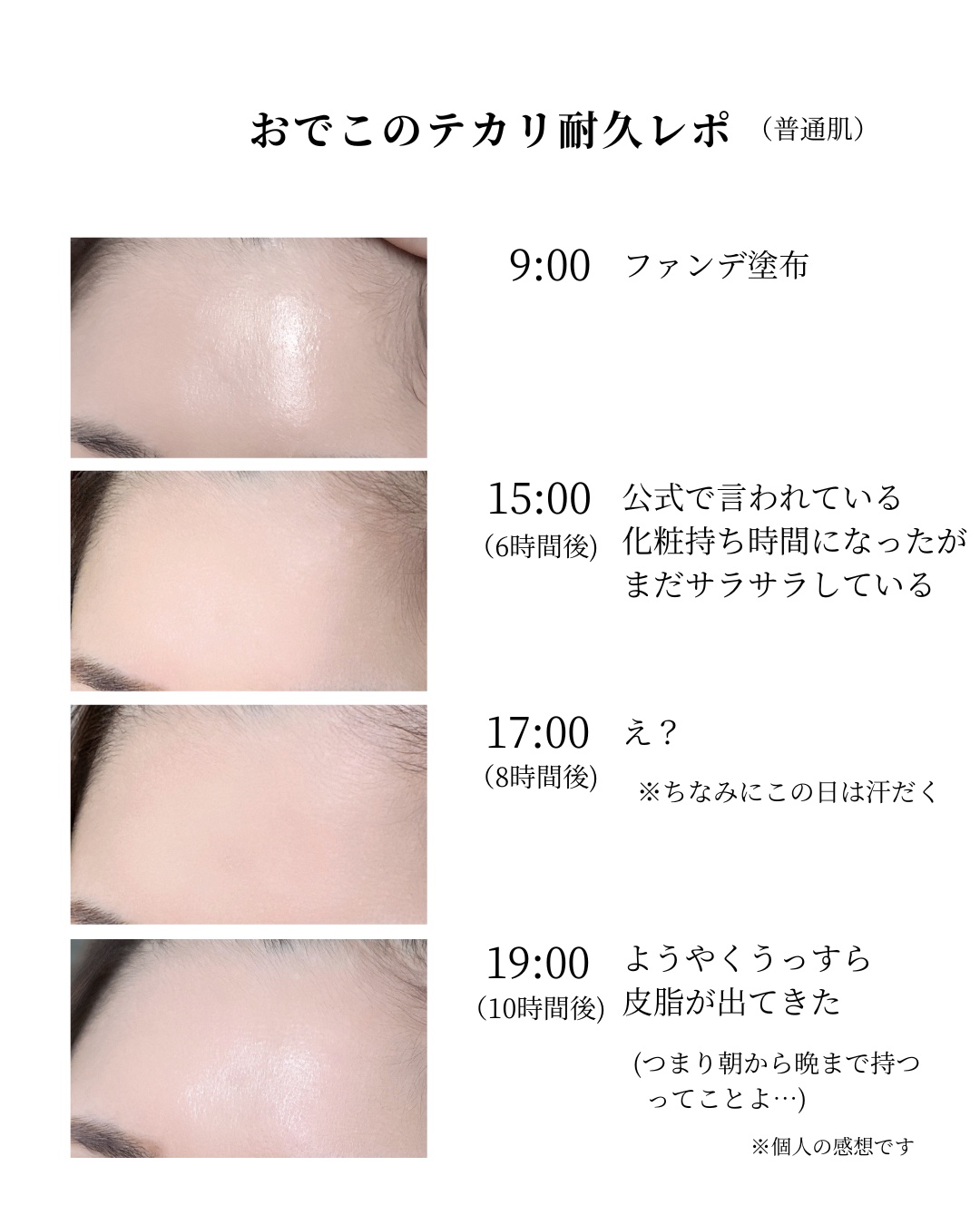 いつもならテカってるはずの我がおでこを見てみたら全然テカってない。 鼻のテカリもいつもよりマシで。 お肌の上でむっちゃ仕事してた…! 他にも推しポイントがたくさんあるのだけれど すごく気になっているのは 「2週間連用でお肌のうるおい改善」。