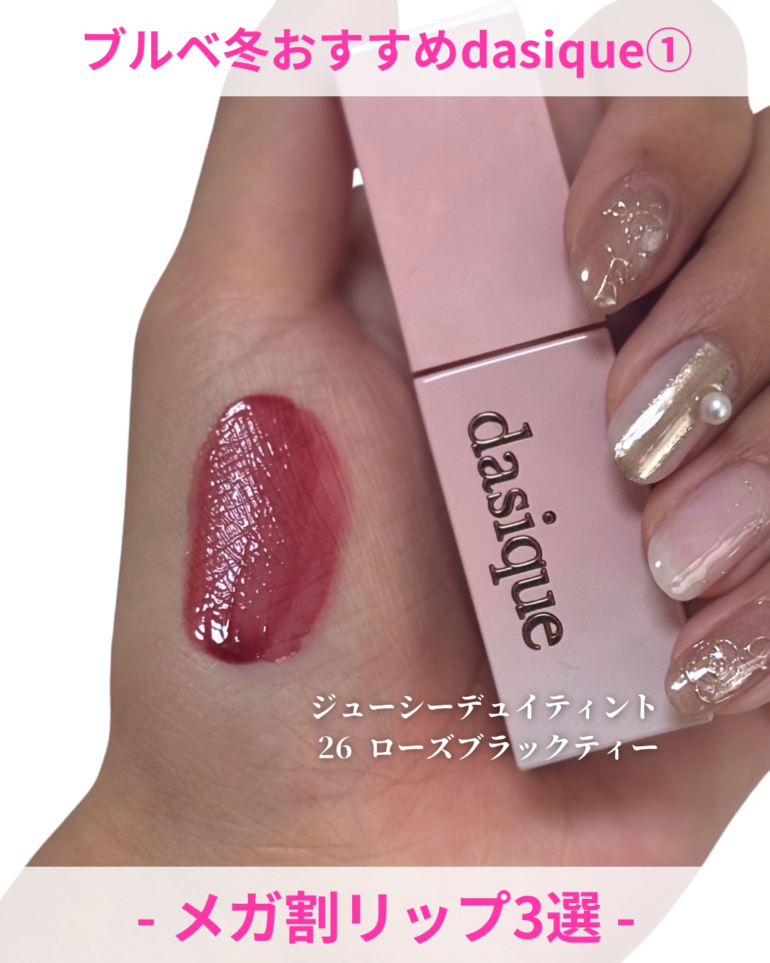 \dasiqueの紅茶ティント🫖/♡dasiqueJuicydewyTint¥1,650去年の秋ぐらいに発売されたdasiqueのローズミルクティーコレクションのティント💖めちゃくちゃ可愛いカラーで、上品な仕上がり🫶🏻発色もいいし、色持ちも抜...