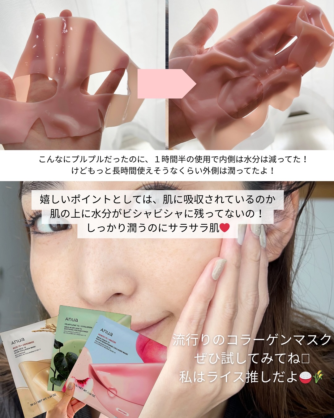👇🏻普通のシートマスクと何が違うの?って思ったら見てね@anua.jp☁️【普通のシートマスク】・不織布やバイオセルロースのシートに、美容液を染み込ませたタイプ・つけた後はシートを捨てる🧊【アヌアのコラーゲンマスク】・シート自体がコラーゲンで...