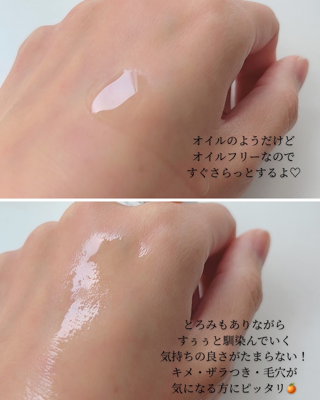 | スルスルっと伸びて、肌になじむとほんのりツヤ感を感じます。 後肌はさらり。 | 詳細を見る | ||