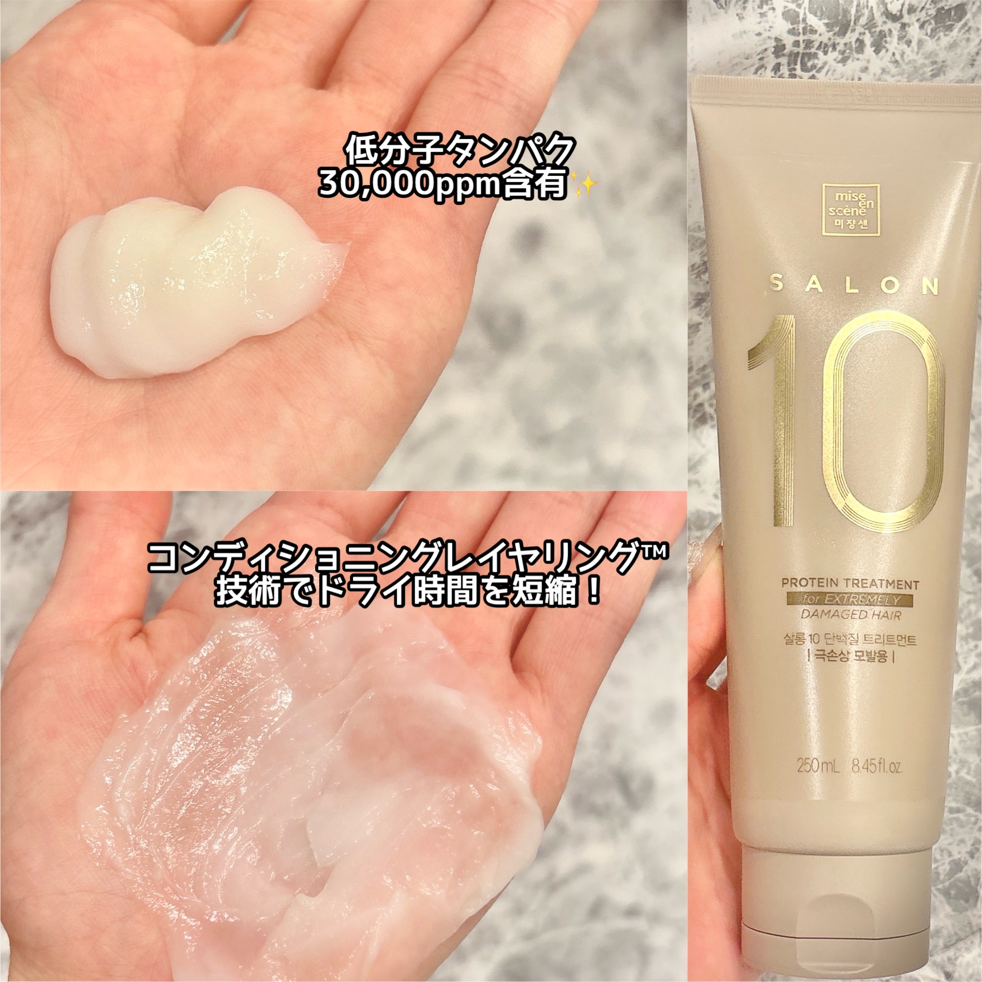 ▶ミジャンセン毎日サロンのような美髪ケアができるヘアケアシリーズです😊🫧サロン10シャンプーダメージヘア用・低分子タンパク質10,000ppm配合・弱酸性処方で髪と頭皮をやさしく洗い上げる🫧サロン10トリートメントダメージヘア用・低分子タンパ...
