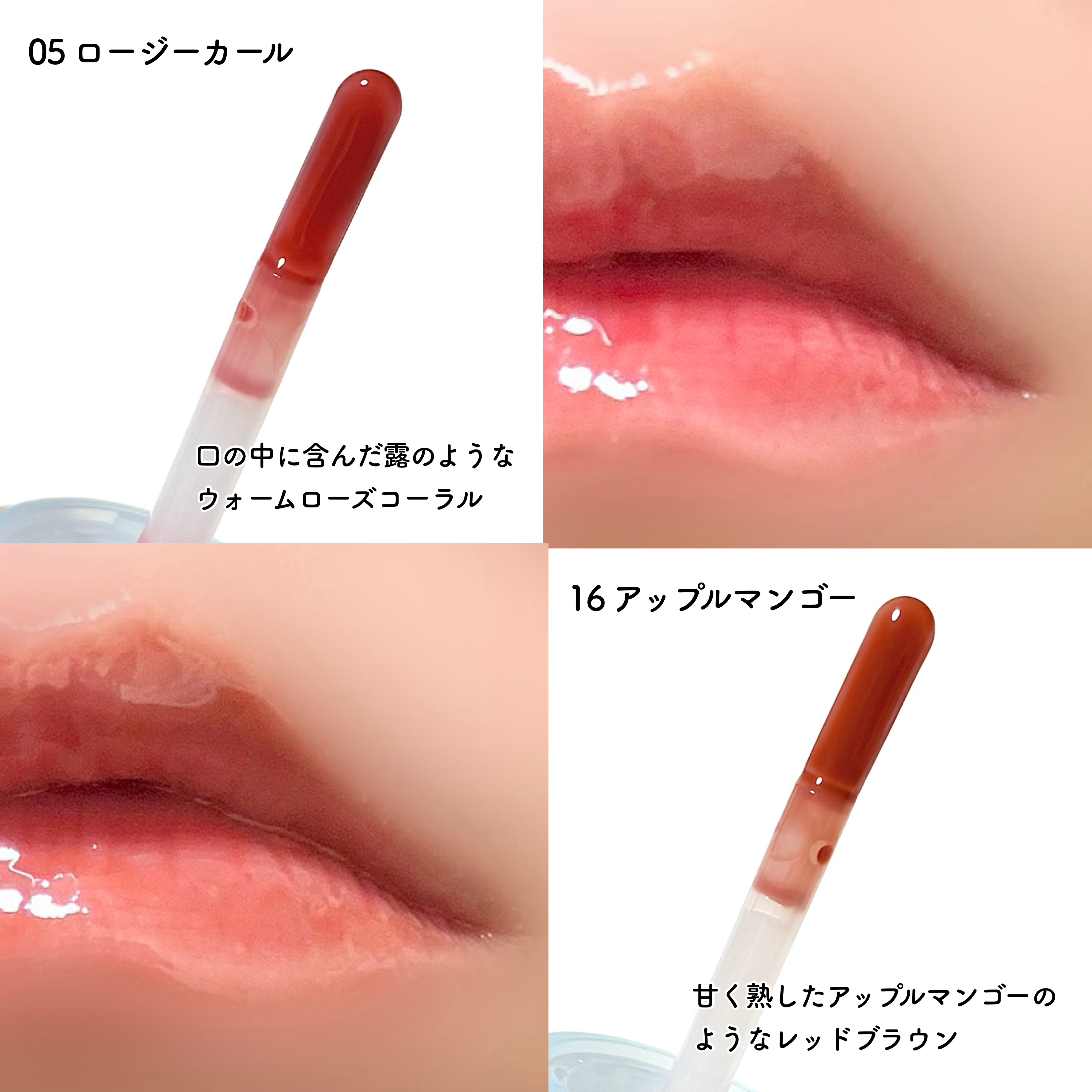 - プランピング*でぷっくりとみえる輝くガラス玉のような唇に仕上げる 保湿と輝きを与えるオイル保湿膜とクリアで鮮やかに色づくカラー展開で角質ケアとリップメイクを同時に叶えるプランピングカラーリップオイル *メイクアップ効果により立体感のある唇を演出すること