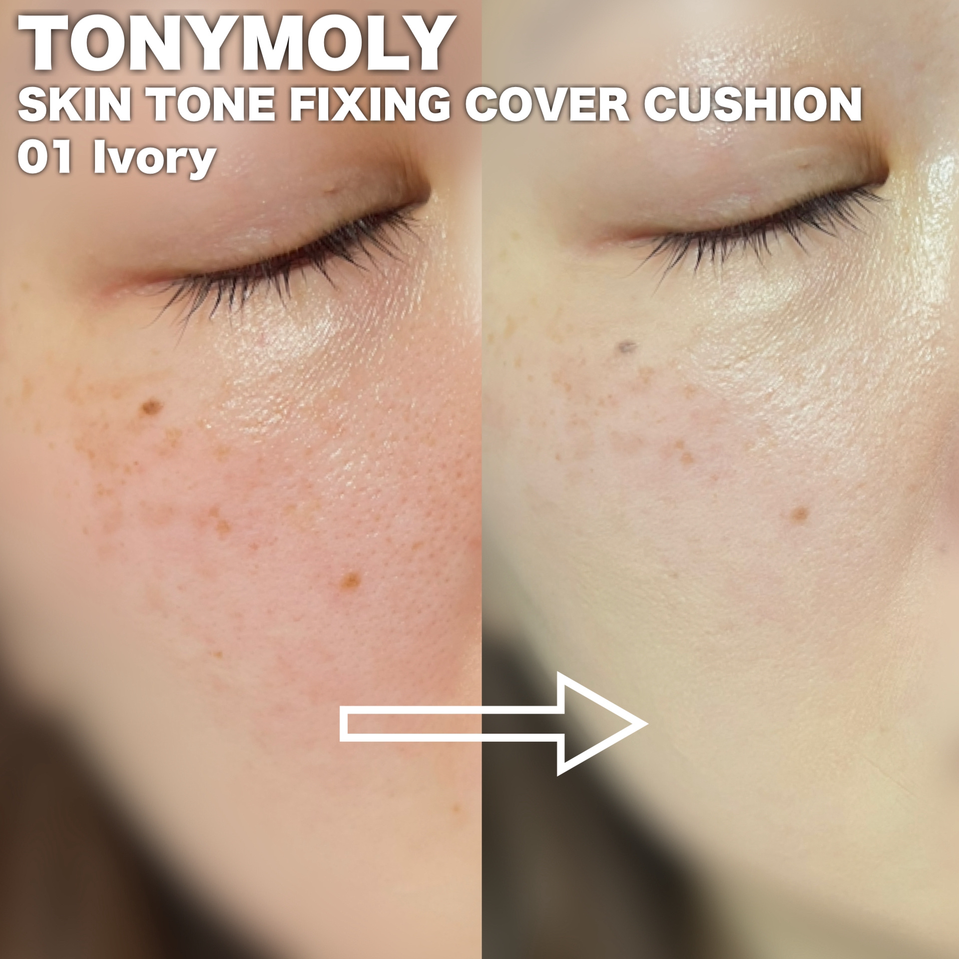 TONYMOLYSkinToneFixingCoverCushionSPF40PA++デザイン性の高いパケのトニーモリー新作クッションファンデーション🖤カラーは3展開00ポーセリン、01アイボリー、02ベージュ私がお試しした00ポーセリンは結...