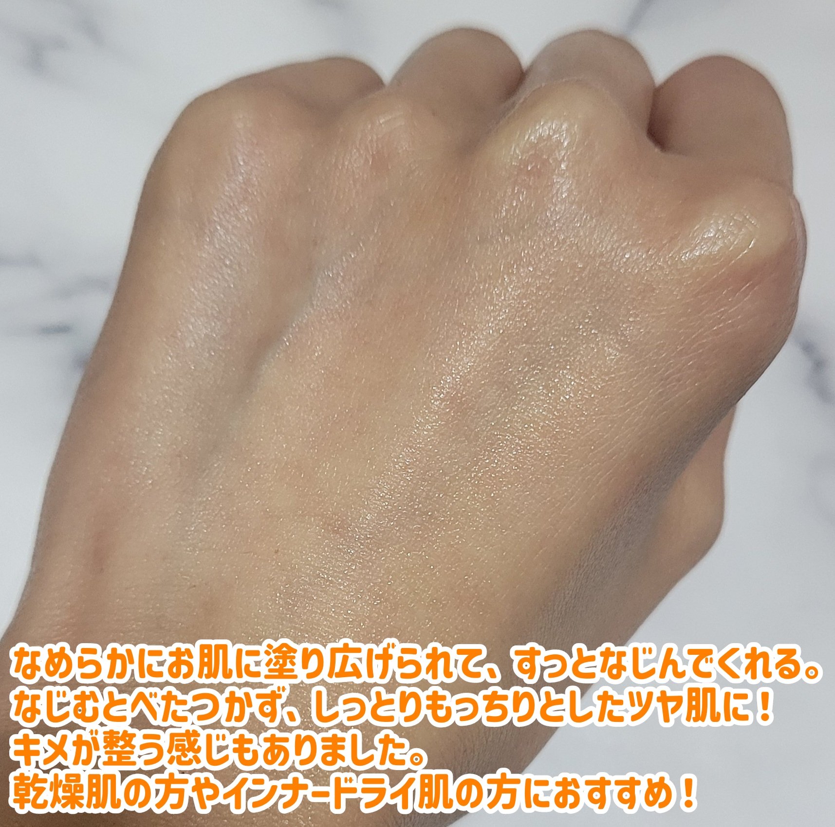 | 最初はさらっとしてるけど馴染ませると肌が手に吸い付くようになり、保湿力抜群! | 詳細を見る | ||