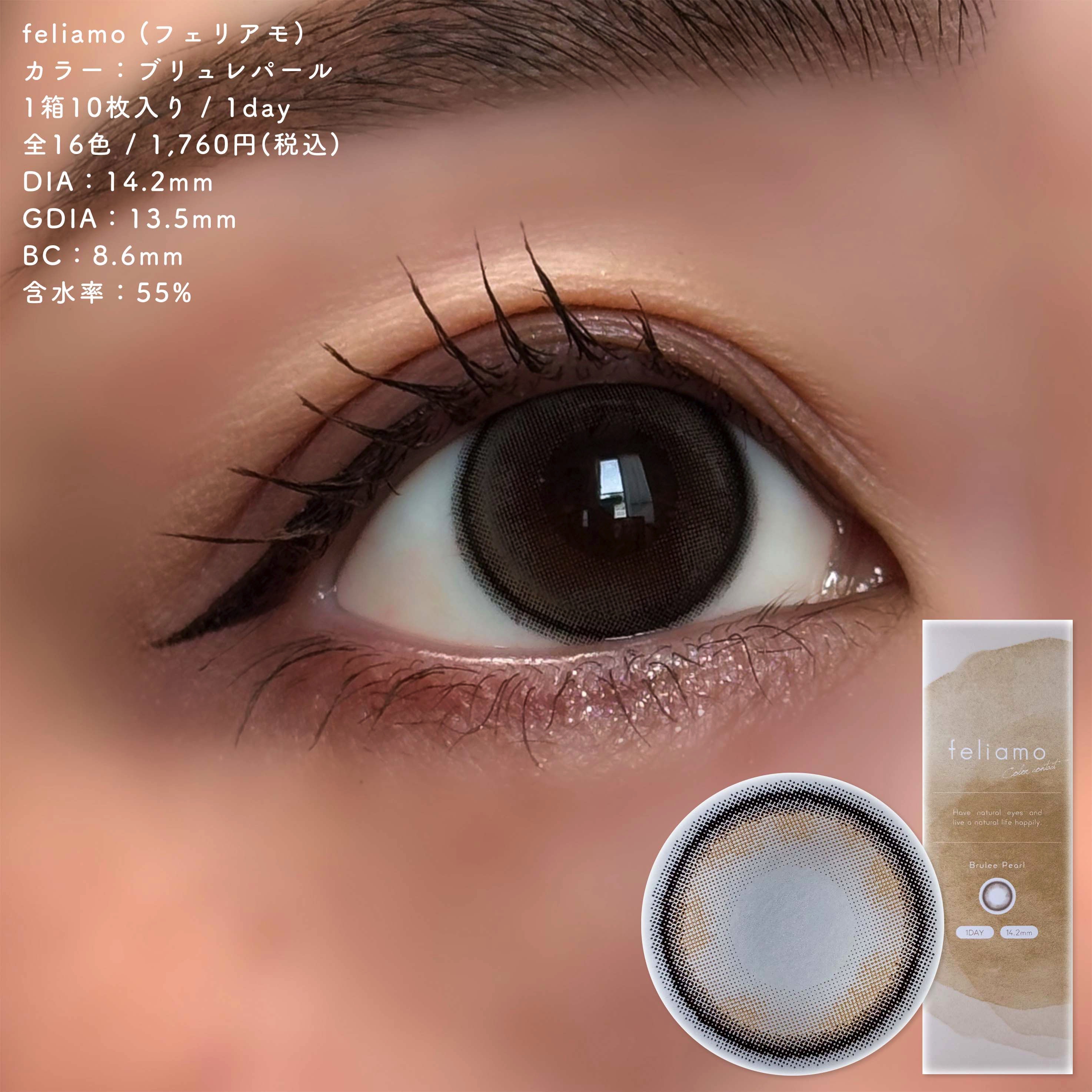#えまのカラコンレポフェリアモ待望の新色💝feliamo・アーモンドプードル・ブリュレパール💎Spec💎・BC:8.6mm・含水率:55%/38%・使用期限:1day(10枚)/1month(2枚)・価格:1day1,760円(税込)/1mo...