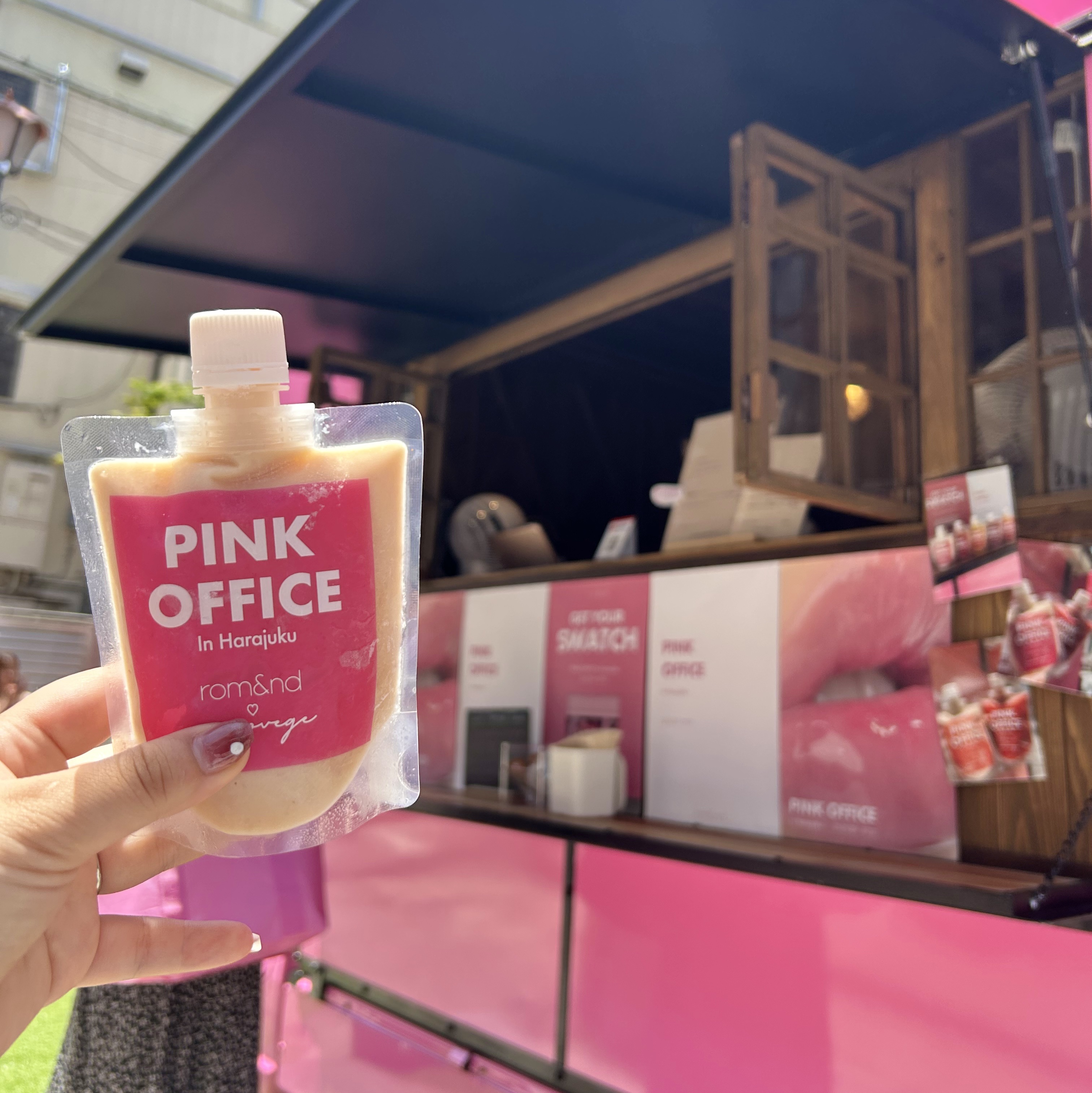 大バズり中!並ぶのか、本音と整理券❗️ロムアンドのポップアップ。コスメ購入特典は1000円から5000円までありますが、4000円以上の特典がお昼に終わってました!🥤ドリンクはアイスコーヒー500円で、800円、1000円のスムージーがあり(...