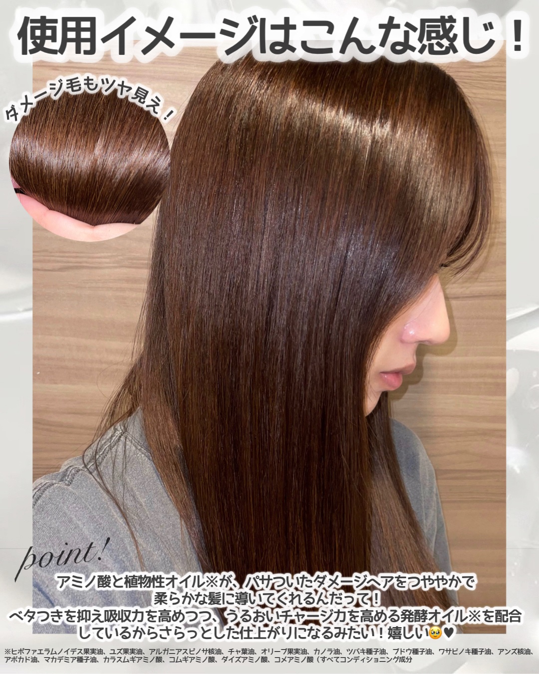 | いつもパサついてたのがうそみたいにしっとりまとまる😭 | 詳細を見る | ||