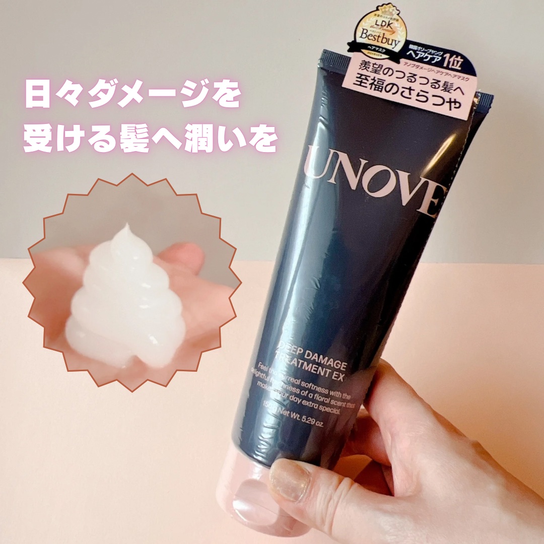 【指通りが変わる!タンパク質トリートメント】「UNOVEディープダメージトリートメントEXフレッシュフローラルムスクの香り」LIPSでも人気で、ベスコス受賞しているこちらのトリートメントをご提供いただいたので、早速使ってみました!こちらのトリ...