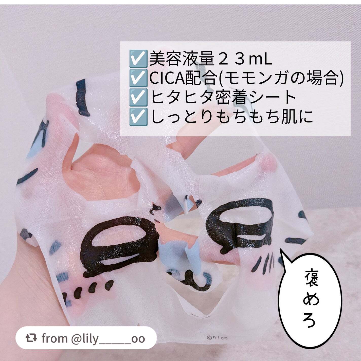 - 「ちいかわ」フェイスマスクシリーズ第二弾!肌悩みに合わせて選べる4種類! モモンガになれちゃうフェイスマスクです。 モモンガ:CICA配合