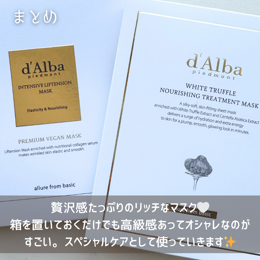 【ツヤのある肌へ】ダルバの人気フェイスマスクをレビュー!<商品概要>d’Alba(ダルバ)・インテンシブリフテンションマスク・ホワイトトリュフナリシングトリートメントマスク・インテンシブリフテンションマスクは、 コラーゲンエキスを含み、 肌に...
