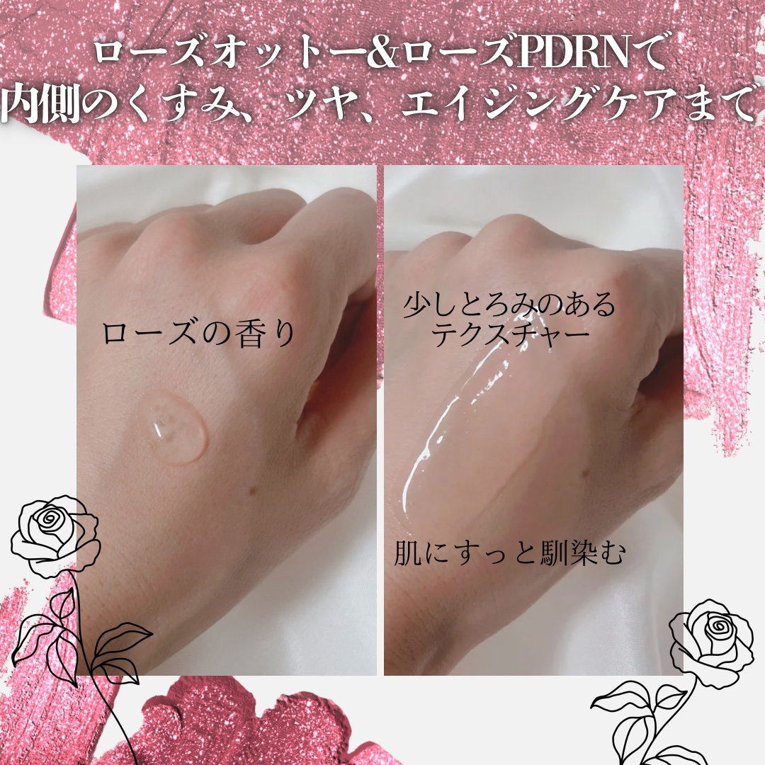 - 貴重なブルガリアンローズオイル*配合の美容液。ブルガリアンローズオイル*に、ダマスクバラ花水*、アルブチン*、多数の植物エキス*を配合することで、透き通るような透明感のある肌印象へ導きます。 韓国とイギリスのヴィーガン認証機関からヴィーガン認証を取得済み。動物原料配合や動物実験などはしていないヴィーガン美容液です。 3000本の中からたった1mLしか抽出できない、貴重なブルガリアンローズオイルに、ダマスクバラ花水、アルブチン等、多数の植物エキスを配合することで、みずみずしく透き通るような肌へ導きます。 *保湿成分