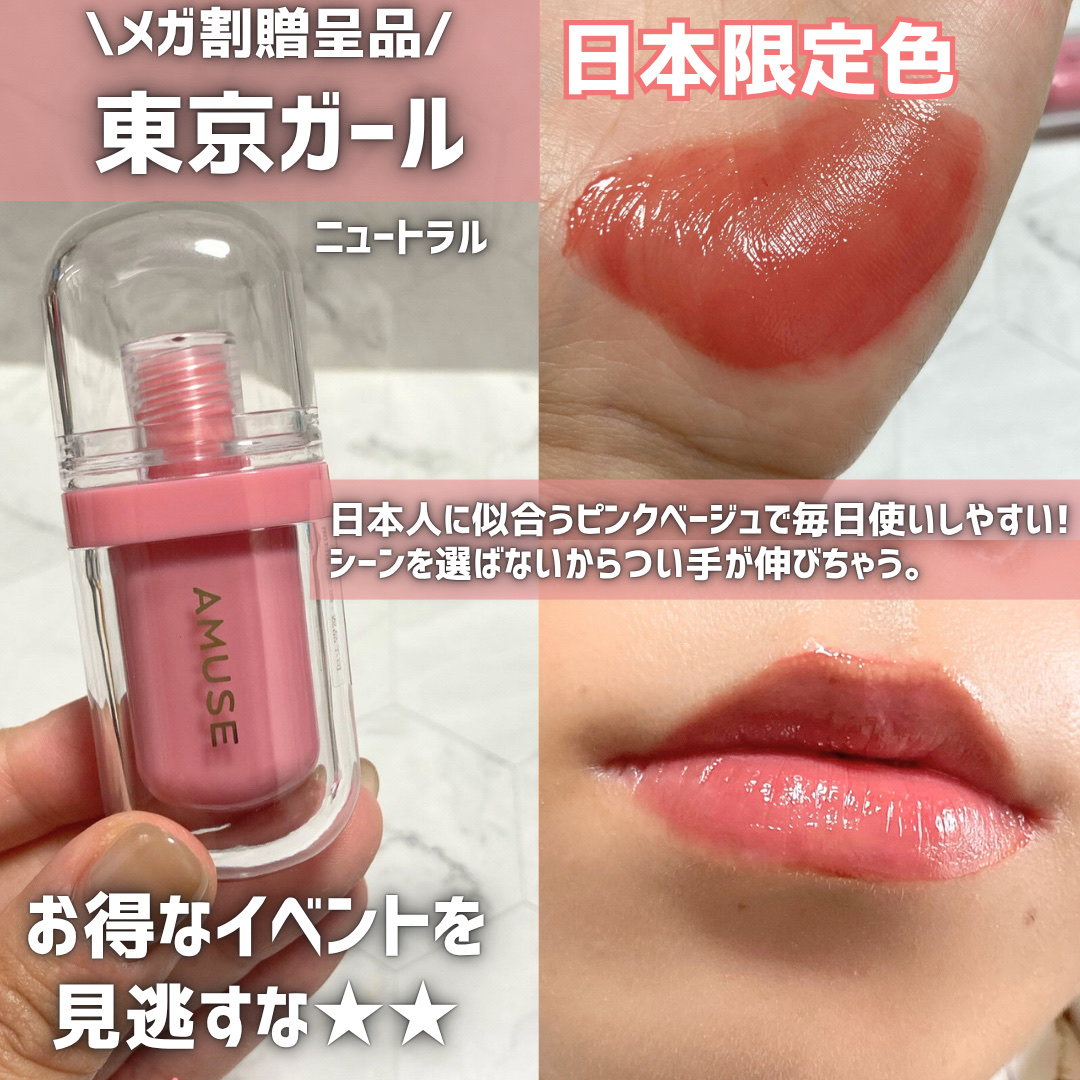 ぷにゅっとジェリーリップ現品がもらえるチャンス.ᐟ♡韓国人も日本旅行に来たら絶対買うアミューズの日本限定カラー✈️6月メガ割で3,000円以上購入すると先着で日本限定カラー「東京ガール」の現品がもらえる.ᐟ⟡.·東京ガール:落ち着いたピンクベ...