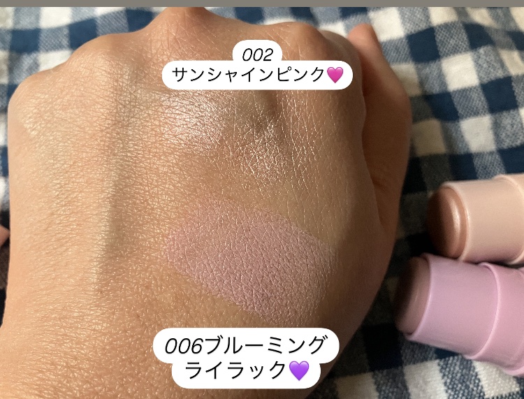#PRI'mmeme様のモニターキャンペーンでマルチスティック001サンシャインピンク・ハイライター006ブルーミングライラック・ブラッシャー(チーク)をいただきました!001サンシャインピンク・ハイライターハイライターとしての使用はもちろん...