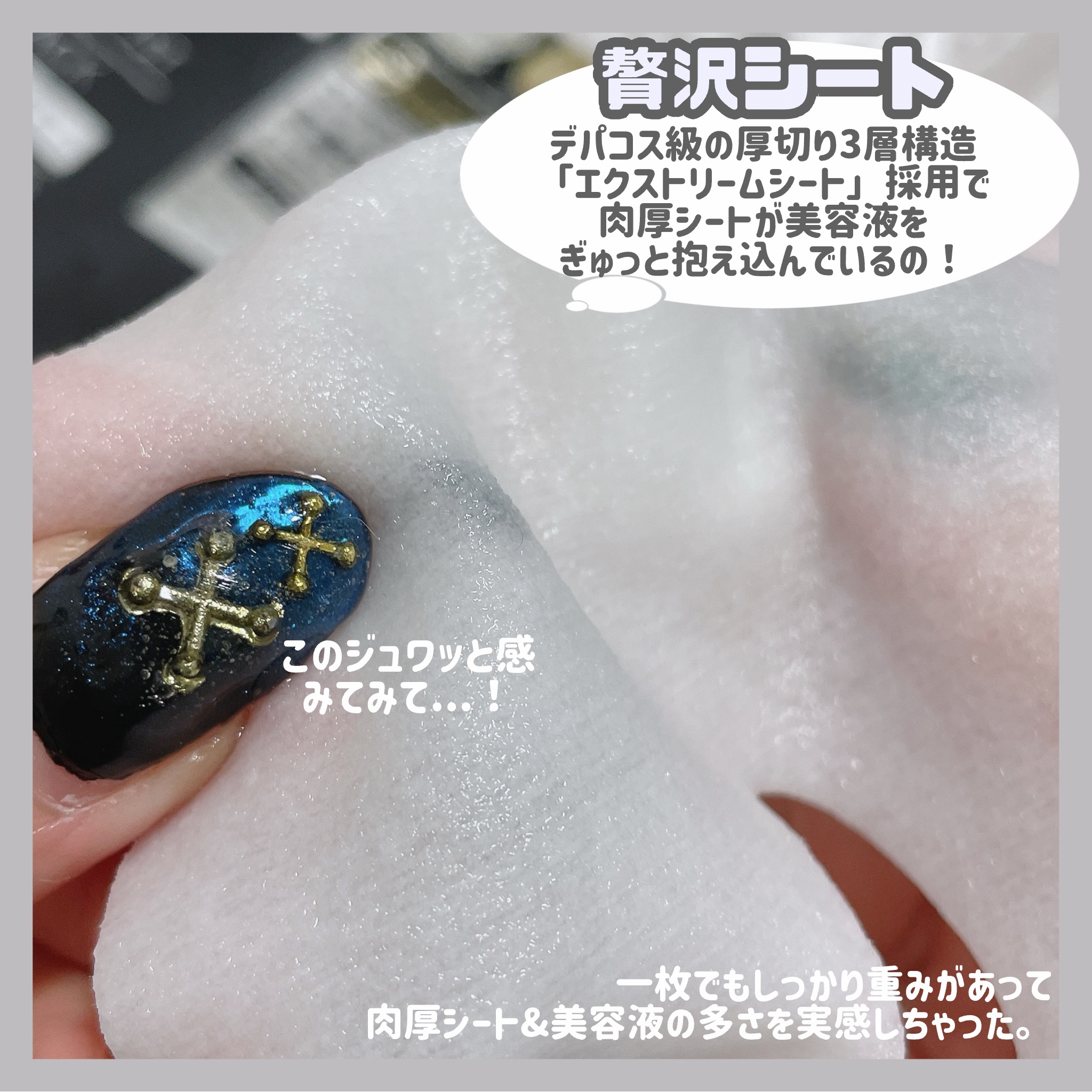 - 【高濃度*1 4種のビタミンC*2+10%ナイアシンアミド*3で全方位毛穴*4ケア】 黒ずみ汚れやざらつき、乾燥による目立ちなど毛穴悩みの全方位ケアを考えたシリーズ最高峰の毛穴ケアマスク。 高濃度*1な、4種のビタミンC*2と10%のナイアシンアミド*3配合。最高級*1「エクストリームシート」で美容液を角質層までお肌に届けます。 もちろん肌のことを考えた防腐剤・アルコール・合成着色料・香料・鉱物油不使用。日本製です。 *1クオリティファーストとして *2アスコルビン酸、パルミチン酸アスコルビルリン酸3Na、リン酸アスコルビルMg、テトラヘキシルデカン酸アスコルビル(全て整肌成分) *3保湿成分 *4潤いを与え、毛穴の目立ちにくいなめらかなお肌へ
