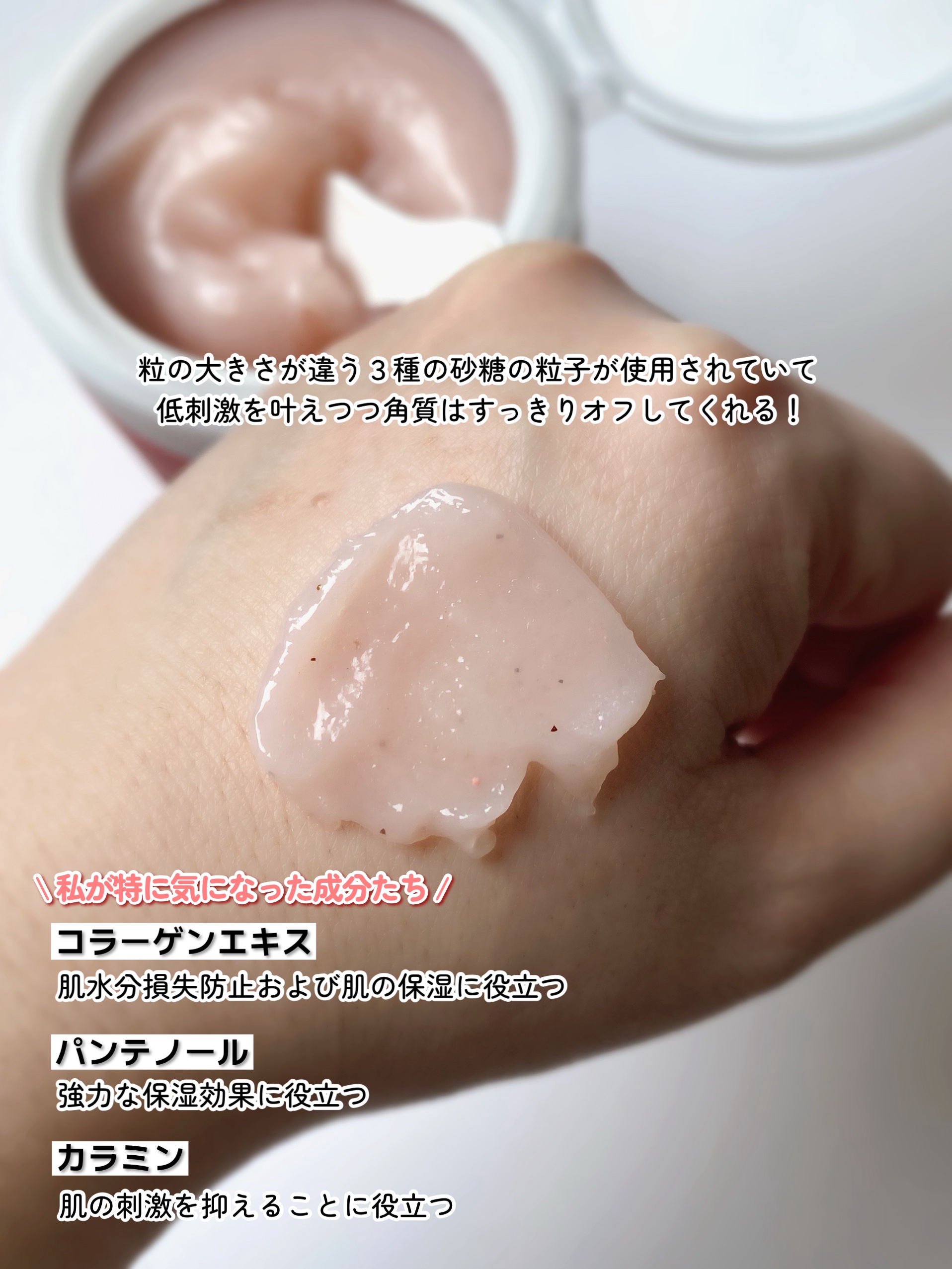 MECHAI様よりいただきました!▽コラーゲンシュガースクラブもっちりのびーる!細かいスクラブで不要な角質を除去し、肌のキメ改善をしながら保湿まで叶える充実成分のスクラブです🥰ジェラート+おもちのような「ジェラもち」テクスチャでお肌の角質を吸...