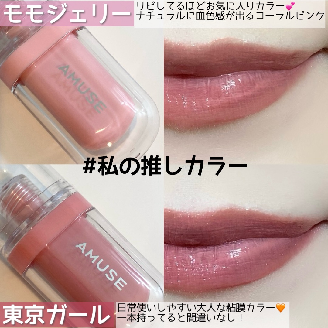 ぷにゅんっとジェリー感!AMUSEジェルフィットティント01モモジェリー06ソウルガールパンプキンジェリー【日本限定】ピンクモモ【日本限定】東京ガール【日本限定】ウォニョンちゃんがイメージモデルしてる、むっちりリップー!AMUSEの人気カラー...