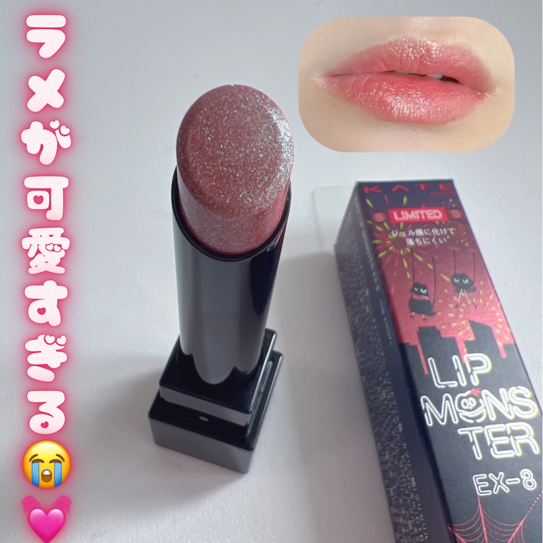 💄KATEケイトリップモンスター🎆EX-8打ち上げ花火ブランコ限定色 レッド系×緑ラメ*\20250524全国発売日/**ジェル膜に化けて落ちにくい*既に完売続出してる#花火モンスター👾ラメがザックザクで可愛い!!EX-8がニュートラルな赤で...