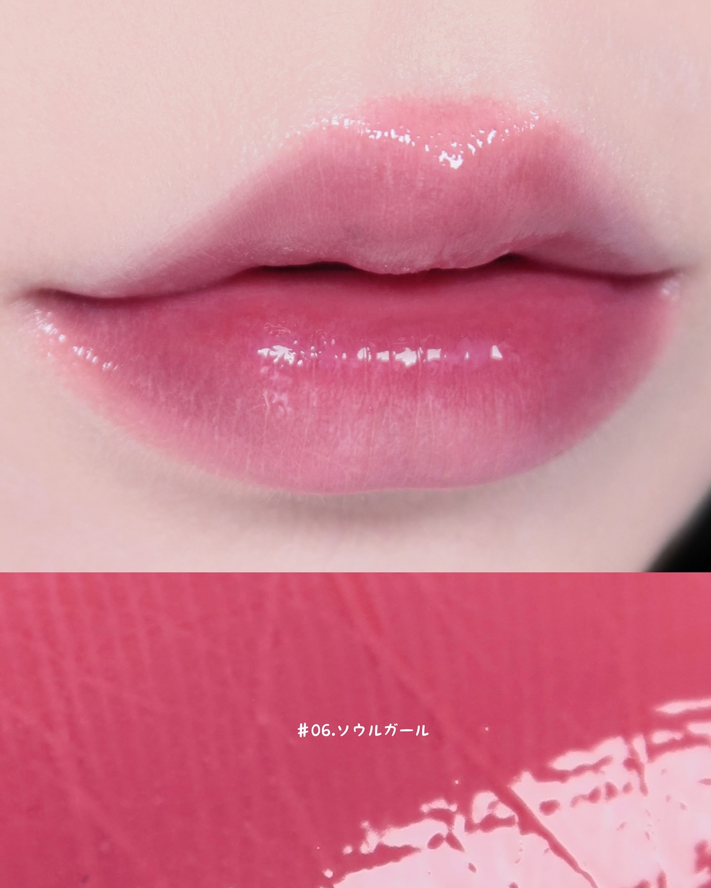 - <01 モモジェリー> Water、Diphenyl Dimethicone、Diisostearyl Malate、Bis-Diglyceryl Polyacyladipate-2、Hydrogenated Polyisobutene、Bis-Behenyl/Isostearyl/Phytosteryl Dimer Dilinoleyl Dimer Dilinoleate、Cetyl PEG/PPG-10/1 Dimethicone、Diglycerin、Hydrogenated Polydecene、Dipropylene Glycol、Polysorbate 60、Sorbitan Isostearate、Hydroxyethyl Acrylate/Sodium Acryloyldimethyl Taurate Copolymer、Pentylene Glycol、Squalane、Titanium Dioxide (CI 77891)、Ethylene/Propylene Copolymer、Ceteareth-20、Phenoxyethanol、Polyglycerin-3、Yellow 5 (CI 19140)、Red 33 (CI 17200)、Fragrance、Ethylhexylglycerin、Glycerin、Aluminum Hydroxide、Ammonium Polyacrylate、Yellow 6 (CI 15985)、Butylene Glycol、Blue 1 (CI 42090)、Tocopheryl Acetate、Prunus Persica (Peach) Fruit Extract、1,2-Hexanediol、Sodium Hyaluronate、Hydroxypropyltrimonium Hyaluronate、Sodium Acetylated Hyaluronate、Hydrolyzed Hyaluronic acid、Hyaluronic Acid、Sodium Hyaluronate Crosspolymer、Hydrolyzed Sodium Hyaluronate、Potassium Hyaluronate <02 ヘルシーサーモン> Water、Diphenyl Dimethicone、Diisostearyl Malate、Bis-Diglyceryl Polyacyladipate-2、Hydrogenated Polyisobutene、Bis-Behenyl/Isostearyl/Phytosteryl Dimer Dilinoleyl Dimer Dilinoleate、Cetyl PEG/PPG-10/1 Dimethicone、Diglycerin、Hydrogenated Polydecene、Dipropylene Glycol、Polysorbate 60、Sorbitan Isostearate、Hydroxyethyl Acrylate/Sodium Acryloyldimethyl Taurate Copolymer、Pentylene Glycol、Squalane、Ethylene/Propylene Copolymer、Ceteareth-20、Phenoxyethanol、Titanium Dioxide (CI 77891)、Polyglycerin-3、Yellow 6 (CI 15985)、Fragrance、Ethylhexylglycerin、Red 33 (CI 17200)、Glycerin、Red 28 (CI 45410)、Aluminum Hydroxide、Ammonium Polyacrylate、Yellow 5 (CI 19140)、Butylene Glycol、Tocopheryl Acetate、Blue 1 (CI 42090)、Prunus Persica (Peach) Fruit Extract、1,2-Hexanediol、Sodium Hyaluronate、Hydroxypropyltrimonium Hyaluronate、Sodium Acetylated Hyaluronate、Hydrolyzed Hyaluronic acid、Hyaluronic Acid、Sodium Hyaluronate Crosspolymer、Hydrolyzed Sodium Hyaluronate、Potassium Hyaluronate <03 ヌーディーピンク> Water、Diphenyl Dimethicone、Diisostearyl Malate、Bis-Diglyceryl Polyacyladipate-2、Hydrogenated Polyisobutene、Bis-Behenyl/Isostearyl/Phytosteryl Dimer Dilinoleyl Dimer Dilinoleate、Cetyl PEG/PPG-10/1 Dimethicone、Diglycerin、Hydrogenated Polydecene、Dipropylene Glycol、Polysorbate 60、Sorbitan Isostearate、Hydroxyethyl Acrylate/Sodium Acryloyldimethyl Taurate Copolymer、Pentylene Glycol、Squalane、Ethylene/Propylene Copolymer、Ceteareth-20、Titanium Dioxide (CI 77891)、Phenoxyethanol、Polyglycerin-3、Red 33 (CI 17200)、Yellow 5 (CI 19140)、Fragrance、Ethylhexylglycerin、Glycerin、Aluminum Hydroxide、Ammonium Polyacrylate、Butylene Glycol、Blue 1 (CI 42090)、Tocopheryl Acetate、Prunus Persica (Peach) Fruit Extract、1,2-Hexanediol、Sodium Hyaluronate、Hydroxypropyltrimonium Hyaluronate、Sodium Acetylated Hyaluronate、Hydrolyzed Hyaluronic acid、Hyaluronic Acid、Sodium Hyaluronate Crosspolymer、Hydrolyzed Sodium Hyaluronate、Potassium Hyaluronate <04 ローズミルク> Water、Diphenyl Dimethicone、Diisostearyl Malate、Bis-Diglyceryl Polyacyladipate-2、Hydrogenated Polyisobutene、Bis-Behenyl/Isostearyl/Phytosteryl Dimer Dilinoleyl Dimer Dilinoleate、Cetyl PEG/PPG-10/1 Dimethicone、Diglycerin、Hydrogenated Polydecene、Dipropylene Glycol、Polysorbate 60、Sorbitan Isostearate、Hydroxyethyl Acrylate/Sodium Acryloyldimethyl Taurate Copolymer、Pentylene Glycol、Squalane、Ethylene/Propylene Copolymer、Ceteareth-20、Titanium Dioxide (CI 77891)、Phenoxyethanol、Polyglycerin-3、Red 28 (CI 45410)、Yellow 6 (CI 15985)、Fragrance、Ethylhexylglycerin、Red 33 (CI 17200)、Glycerin、Aluminum Hydroxide、Ammonium Polyacrylate、Butylene Glycol、Blue 1 (CI 42090)、Tocopheryl Acetate、Prunus Persica (Peach) Fruit Extract、1,2-Hexanediol、Sodium Hyaluronate、Hydroxypropyltrimonium Hyaluronate、Sodium Acetylated Hyaluronate、Hydrolyzed Hyaluronic acid、Hyaluronic Acid、Sodium Hyaluronate Crosspolymer、Hydrolyzed Sodium Hyaluronate、Potassium Hyaluronate <05 ベージュフィグ> Water、Diphenyl Dimethicone、Diisostearyl Malate、Bis-Diglyceryl Polyacyladipate-2、Hydrogenated Polyisobutene、Bis-Behenyl/Isostearyl/Phytosteryl Dimer Dilinoleyl Dimer Dilinoleate、Cetyl PEG/PPG-10/1 Dimethicone、Diglycerin、Hydrogenated Polydecene、Dipropylene Glycol、Polysorbate 60、Sorbitan Isostearate、Hydroxyethyl Acrylate/Sodium Acryloyldimethyl Taurate Copolymer、Pentylene Glycol、Squalane、Titanium Dioxide (CI 77891)、Ethylene/Propylene Copolymer、Ceteareth-20、Phenoxyethanol、Polyglycerin-3、Yellow 5 (CI 19140)、Red 33 (CI 17200)、Fragrance、Ethylhexylglycerin、Yellow 6 (CI 15985)、Glycerin、Aluminum Hydroxide、Ammonium Polyacrylate、Butylene Glycol、Blue 1 (CI 42090)、Tocopheryl Acetate、Prunus Persica (Peach) Fruit Extract、1,2-Hexanediol、Sodium Hyaluronate、Hydroxypropyltrimonium Hyaluronate、Sodium Acetylated Hyaluronate、Hydrolyzed Hyaluronic acid、Hyaluronic Acid、Sodium Hyaluronate Crosspolymer、Hydrolyzed Sodium Hyaluronate、Potassium Hyaluronate <06 ソウルガール> Water、Diphenyl Dimethicone、Diisostearyl Malate、Bis-Diglyceryl Polyacyladipate-2、Hydrogenated Polyisobutene、Bis-Behenyl/Isostearyl/Phytosteryl Dimer Dilinoleyl Dimer Dilinoleate、Cetyl PEG/PPG-10/1 Dimethicone、Diglycerin、Hydrogenated Polydecene、Dipropylene Glycol、Polysorbate 60、Sorbitan Isostearate、Hydroxyethyl Acrylate/Sodium Acryloyldimethyl Taurate Copolymer、Pentylene Glycol、Squalane、Ethylene/Propylene Copolymer、Ceteareth-20、Titanium Dioxide (CI 77891)、Phenoxyethanol、Polyglycerin-3、Red 33 (CI 17200)、Yellow 6 (CI 15985)、Fragrance、Ethylhexylglycerin、Yellow 5 (CI 19140)、Glycerin、Aluminum Hydroxide、Ammonium Polyacrylate、Blue 1 (CI 42090)、Butylene Glycol、Tocopheryl Acetate